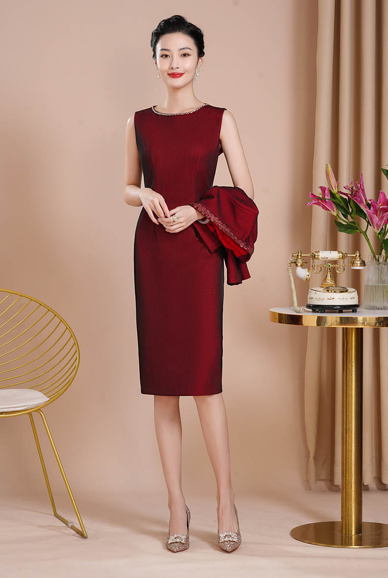 春季新款媽媽顯瘦優雅婚慶連衣裙