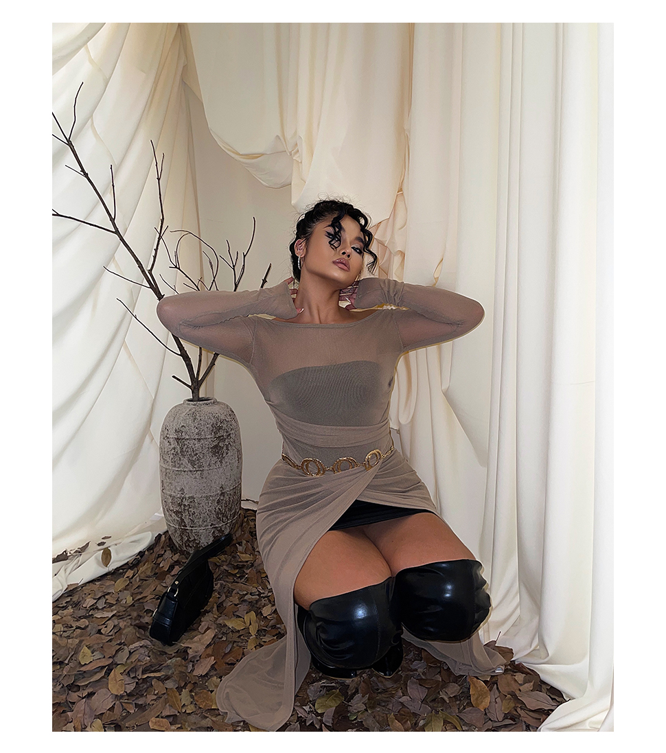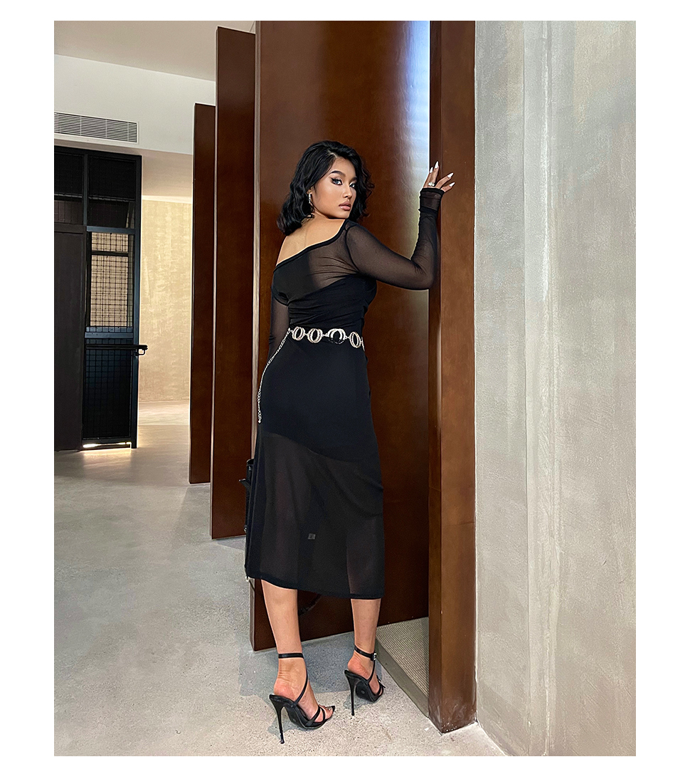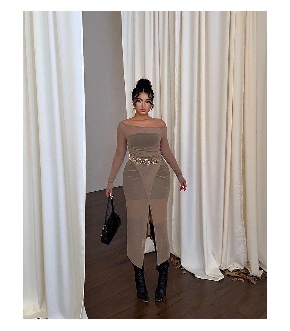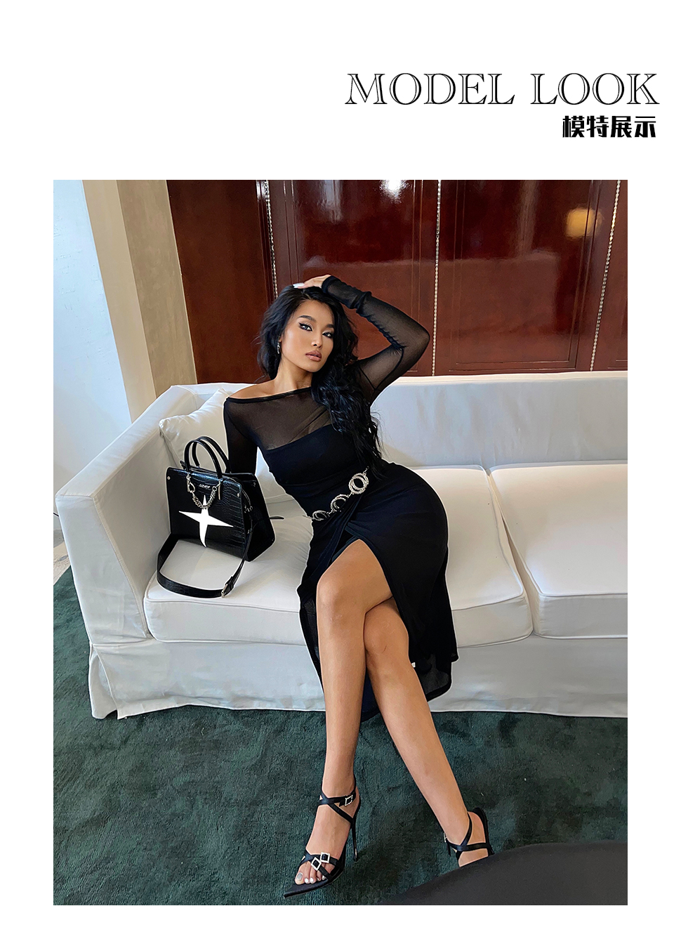 楠哥微胖mm辣妹性感連衣裙女早秋新款大碼高腰顯瘦高級感開叉長裙