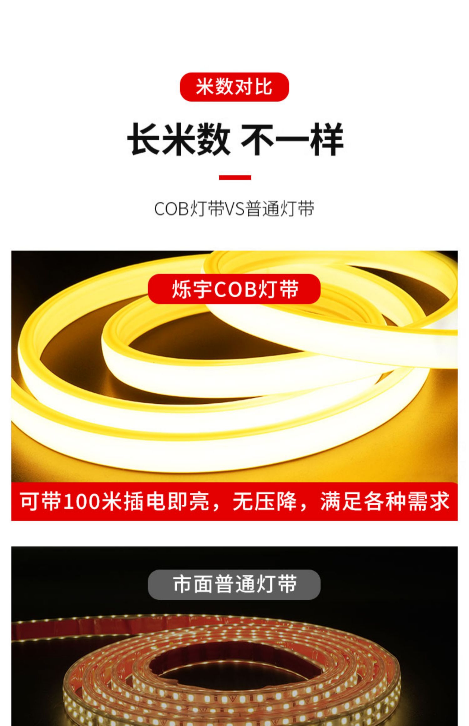 cob燈帶LED超亮高壓220v戶外防水家用客廳吊頂自粘吊頂工程軟燈條