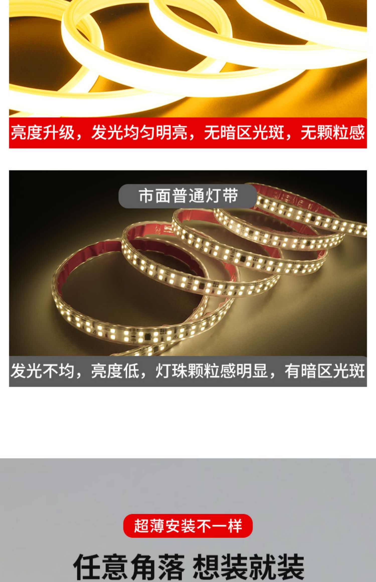 超薄led燈帶自粘線形燈槽客廳家用吊頂220v防水超亮COB硅膠軟燈條