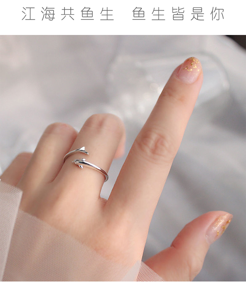 魚尾素圈戒指純銀情侶對戒女簡約小眾刻字七夕情人節送女友禮物