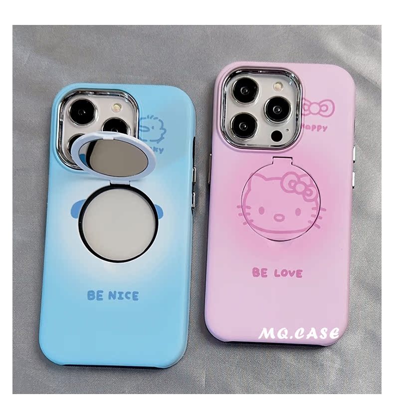可愛卡通適用蘋果14手機殼iPhone13Promax新款二合一菲林保護套12防摔11全包鏡子支架硬殼女ins情侶可愛日韓