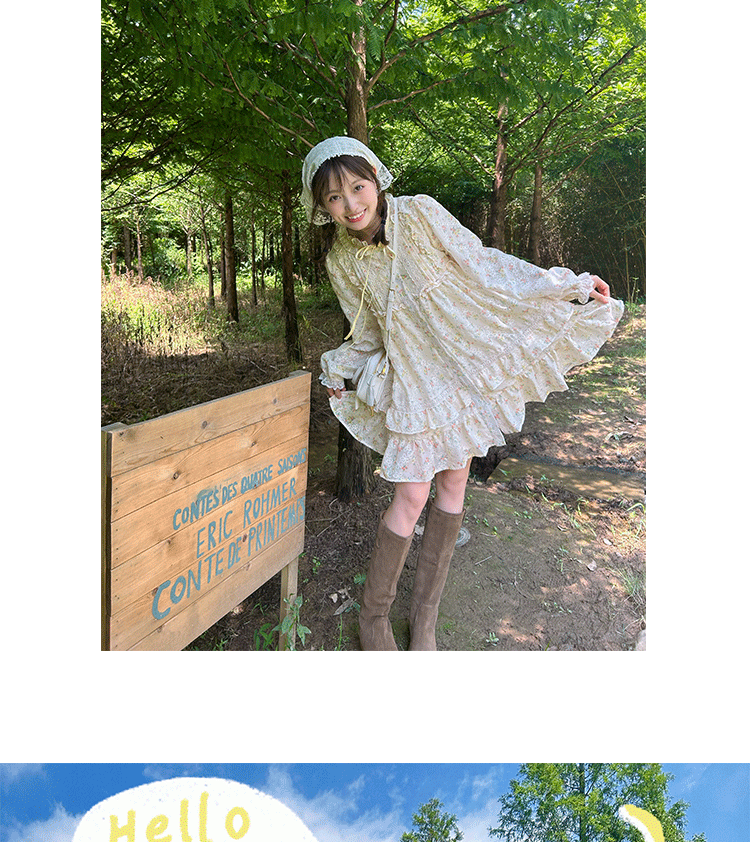 夢的馬 復古氛圍感碎花連衣裙水墨氣質慵懶防曬長袖短裙2023新款