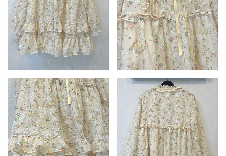 遲傘傘 23/fw 雪霧神女 重工宮廷感燈籠袖系帶紋理千層連衣裙女