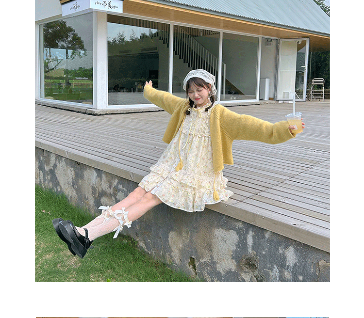 sinsingirl 陽光琥珀 棕色蕾絲花邊裙夏季少女裙子套頭連衣裙女