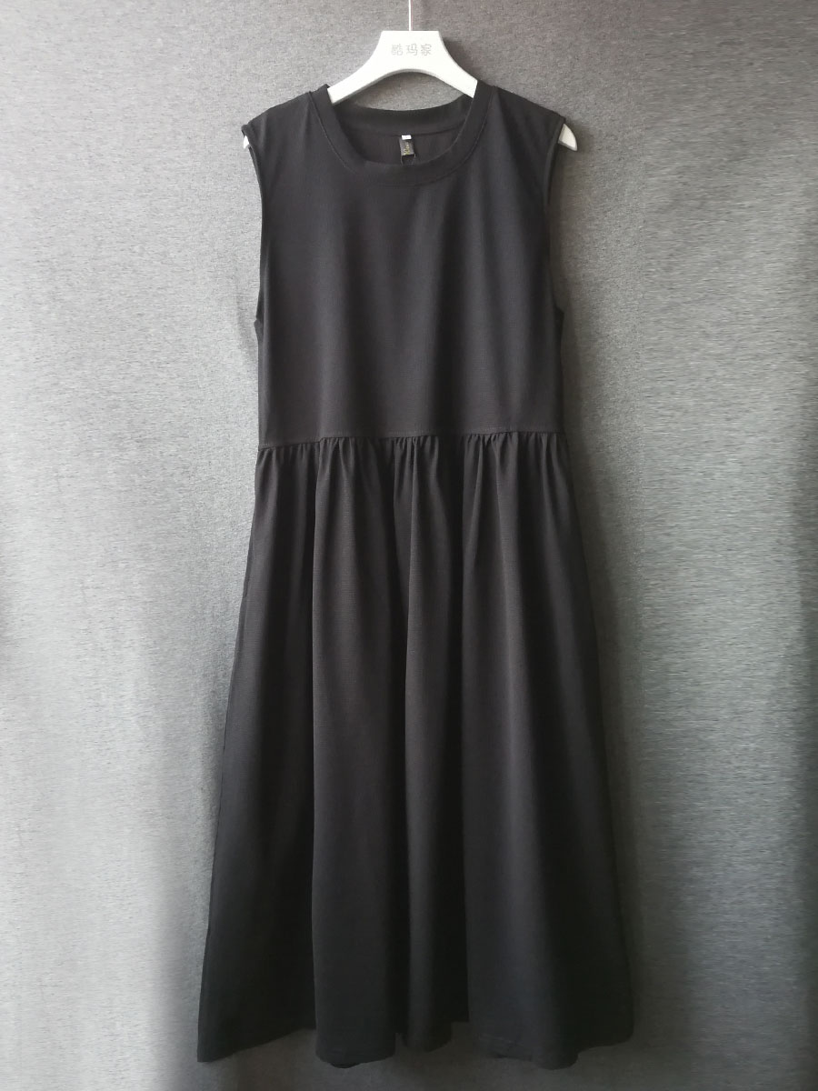 大碼純色a字氣質小黑裙無袖馬甲裙