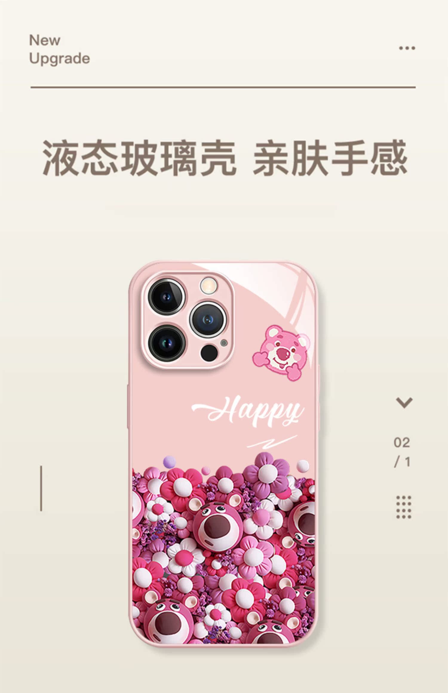 新款草莓熊happy公仔適用蘋果14promax手機殼iPhone14pro高級感玻璃13pm情侶12全包防摔11女款plus小眾xs女生