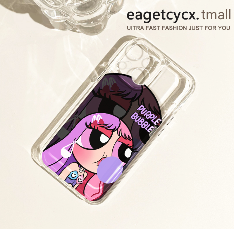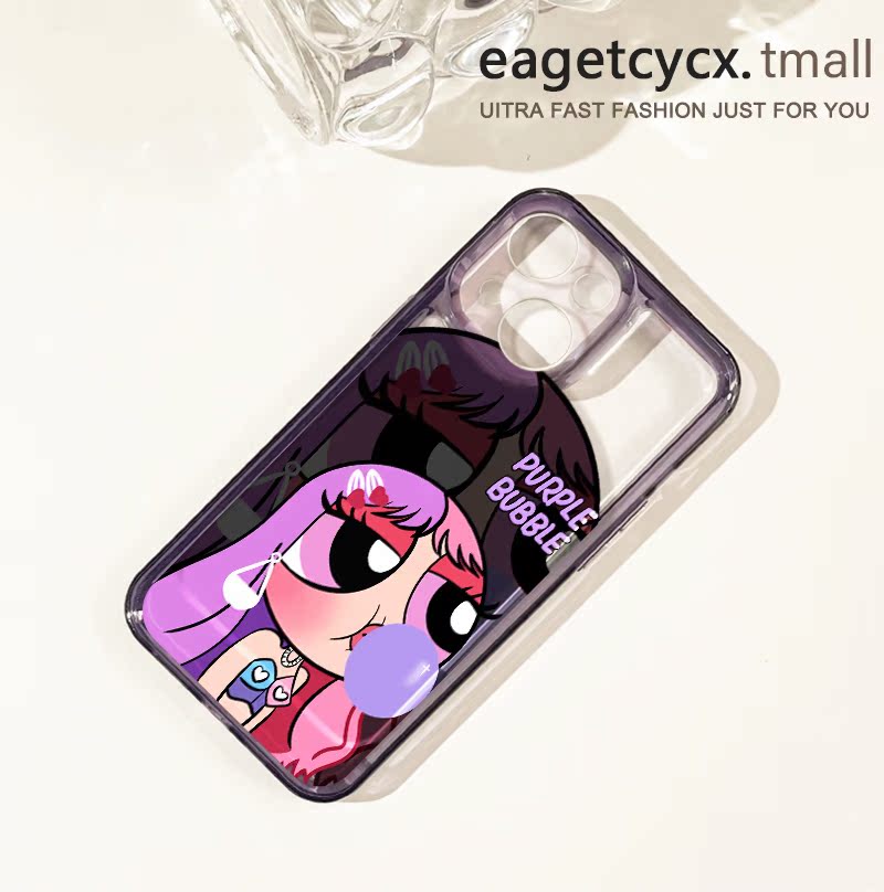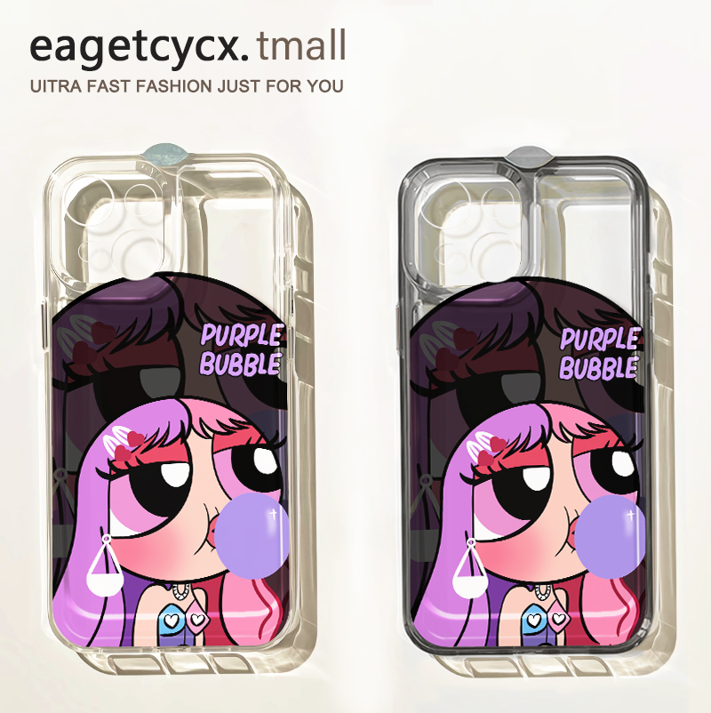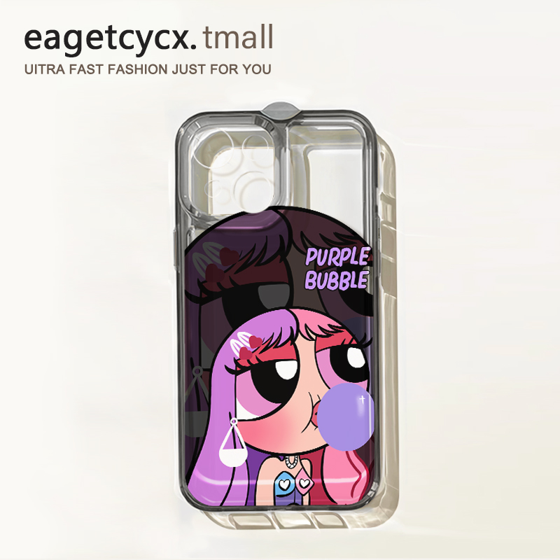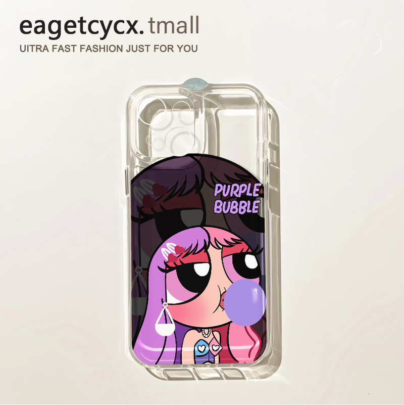 紫色飛天小女警適用蘋果14promax手機殼iPhone13透明12情侶新款11pro亞克力1plus5可愛xs少女xr全包x防摔硬殼
