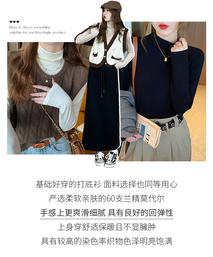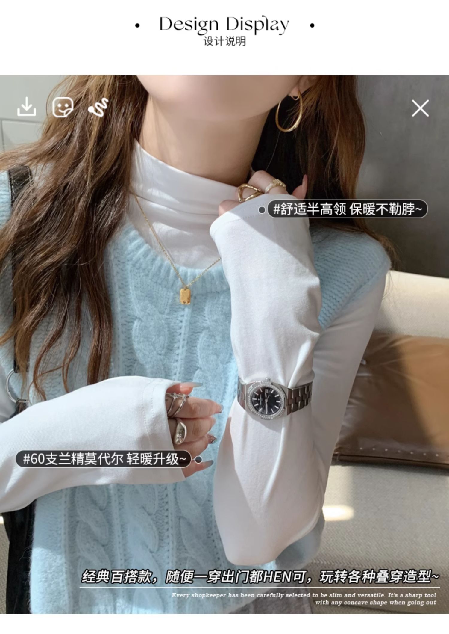 半高領打底衫女秋冬2023新款白色莫代爾春秋黑色長袖內搭中領上衣