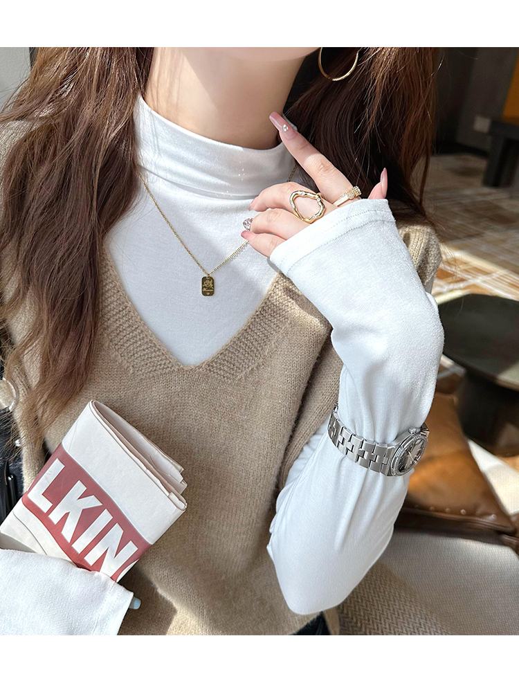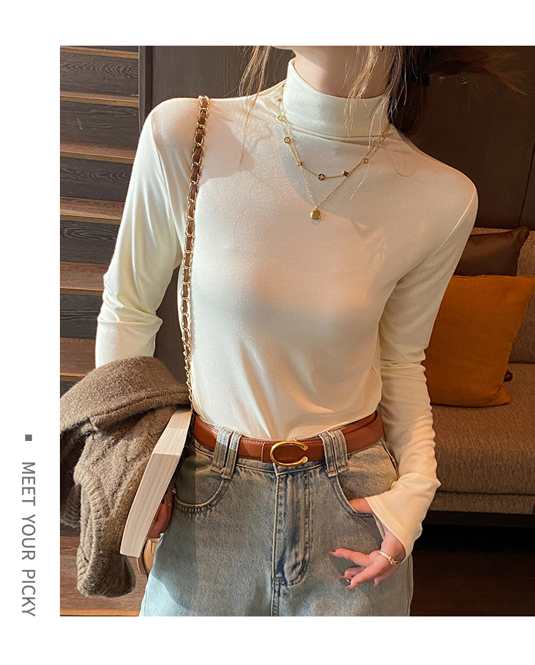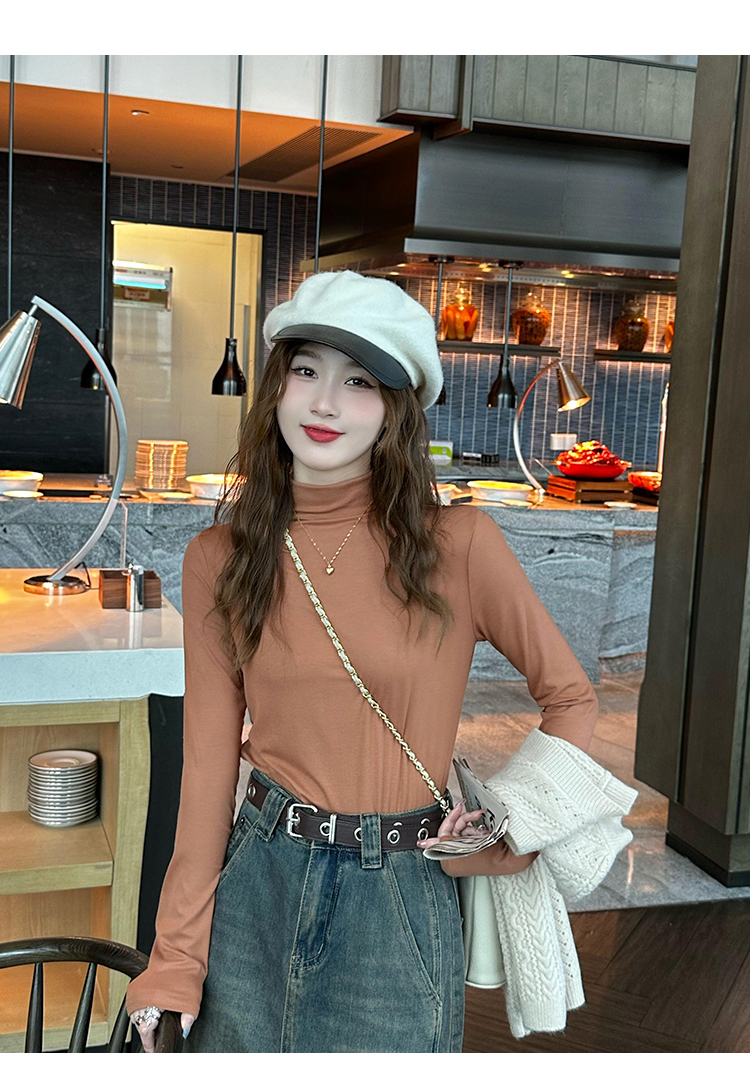 半高領打底衫女2023年秋冬新款內搭修身顯瘦百搭長袖加絨加厚T恤