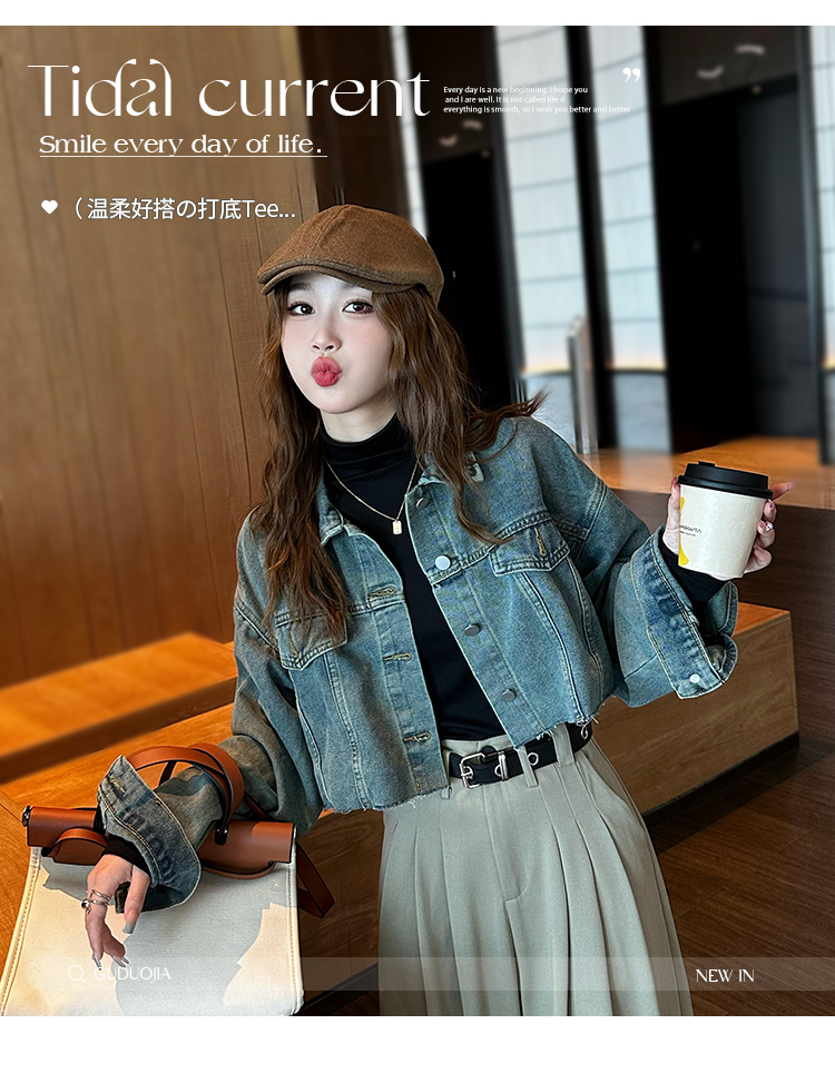 小眾設計感寬松正肩長袖T恤春秋美式復古插肩百搭甜辣上衣女