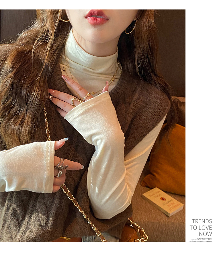 半高領打底衫女2023新款加絨加厚秋冬德絨黑色內搭長袖上衣針織衫