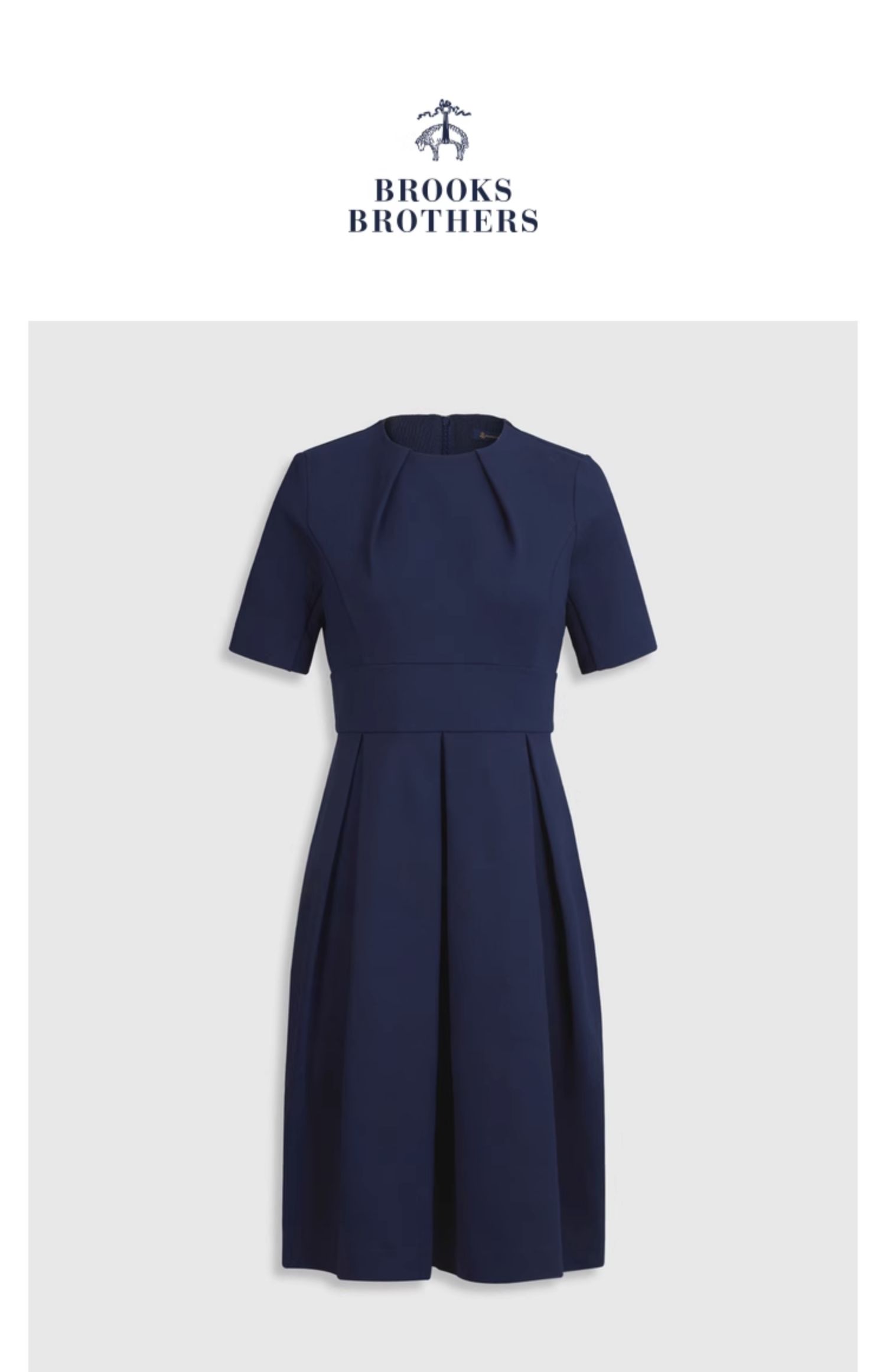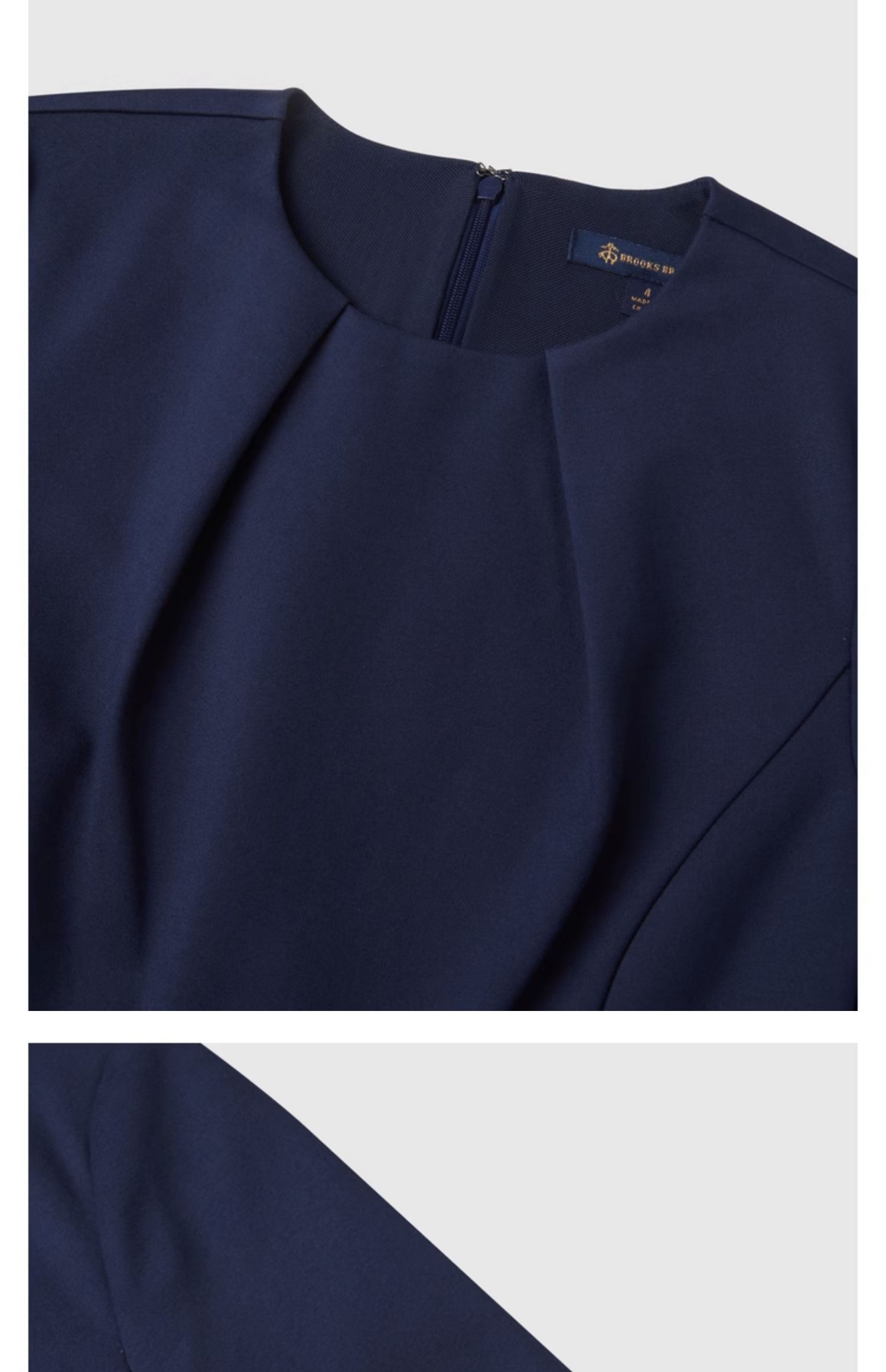 Brooks Brothers/布克兄弟女士23秋新圓領美式中袖通勤收腰連衣裙