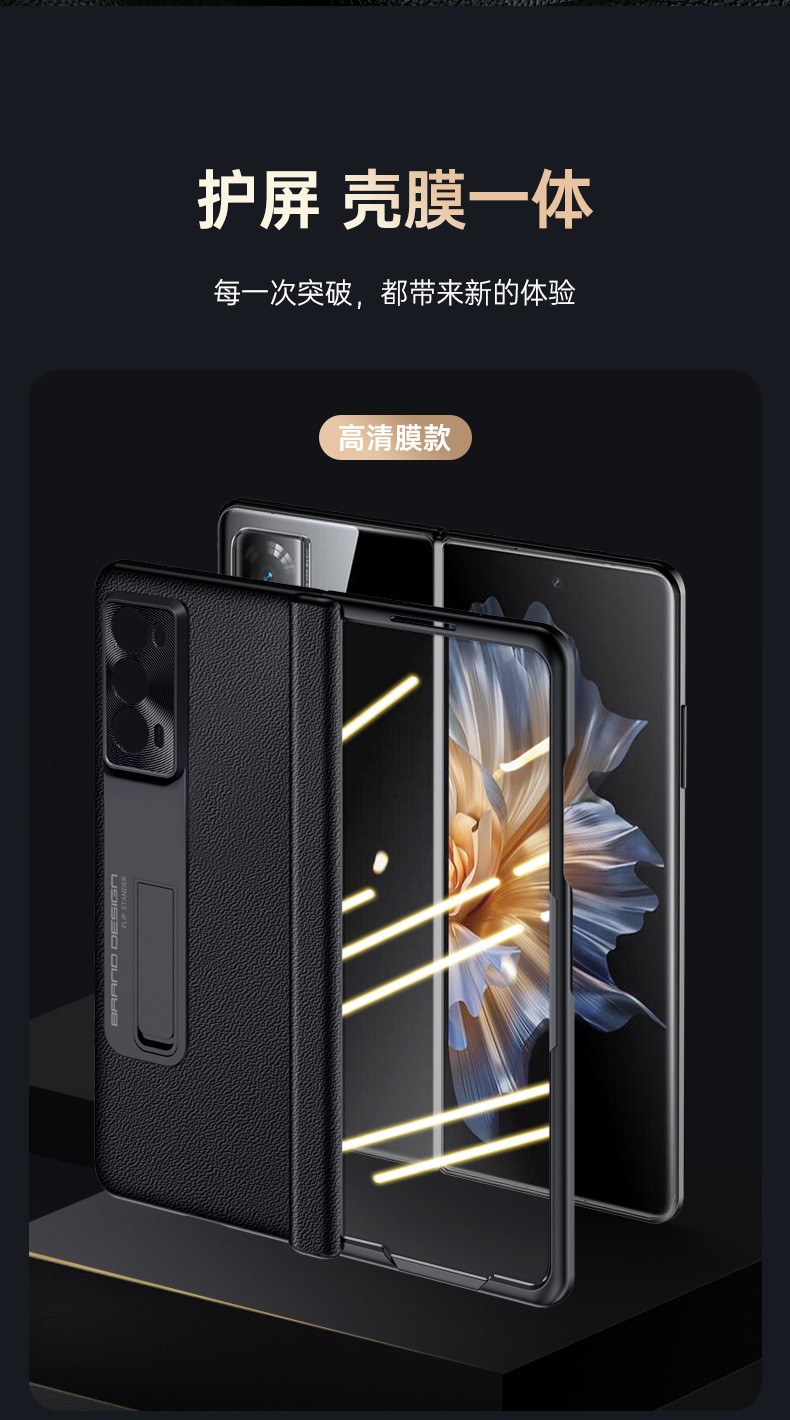 榮耀MagicV2手機殼新款真皮華為榮耀magic vs折疊屏保護套magicv至臻版素皮網紅防摔高級感全包殼膜一體外殼V