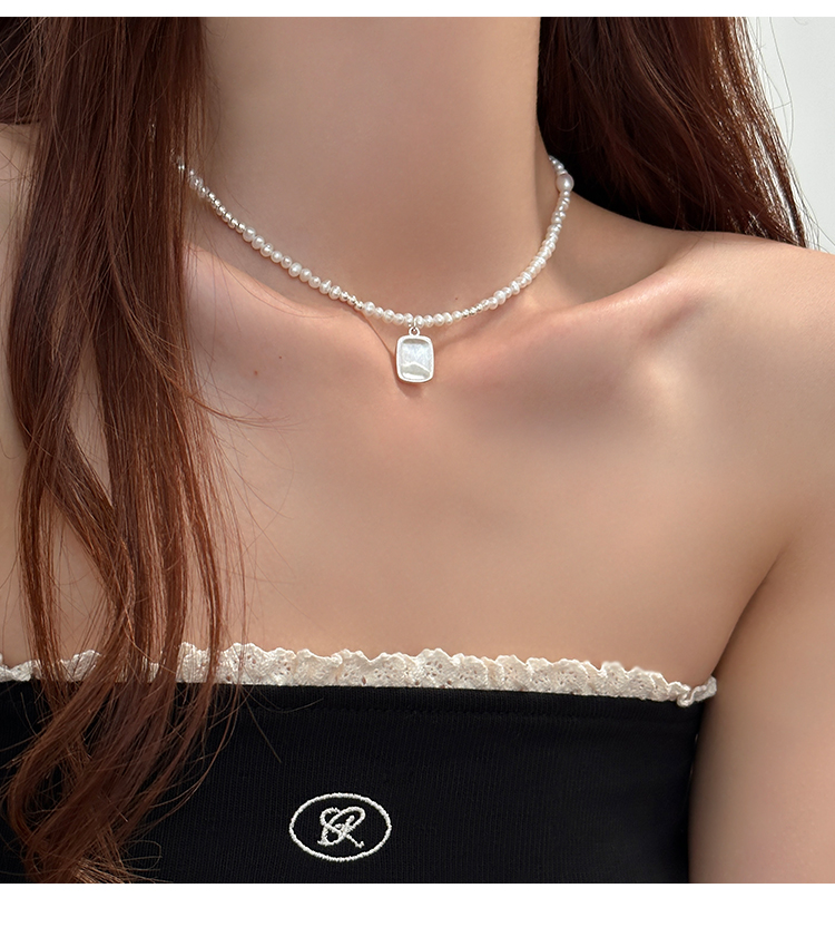 925純銀珍珠拼接項鏈2023新款爆款碎銀子鎖骨鏈女輕奢小眾高級感