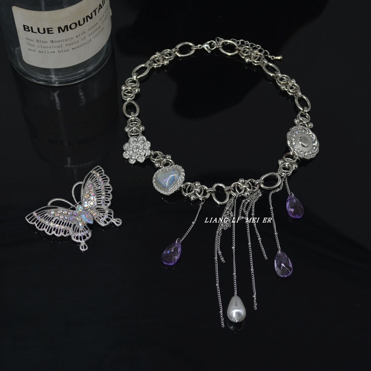 立體水晶蝴蝶流蘇項鏈辣妹vintage復古choker鎖骨鏈輕奢百搭頸鏈