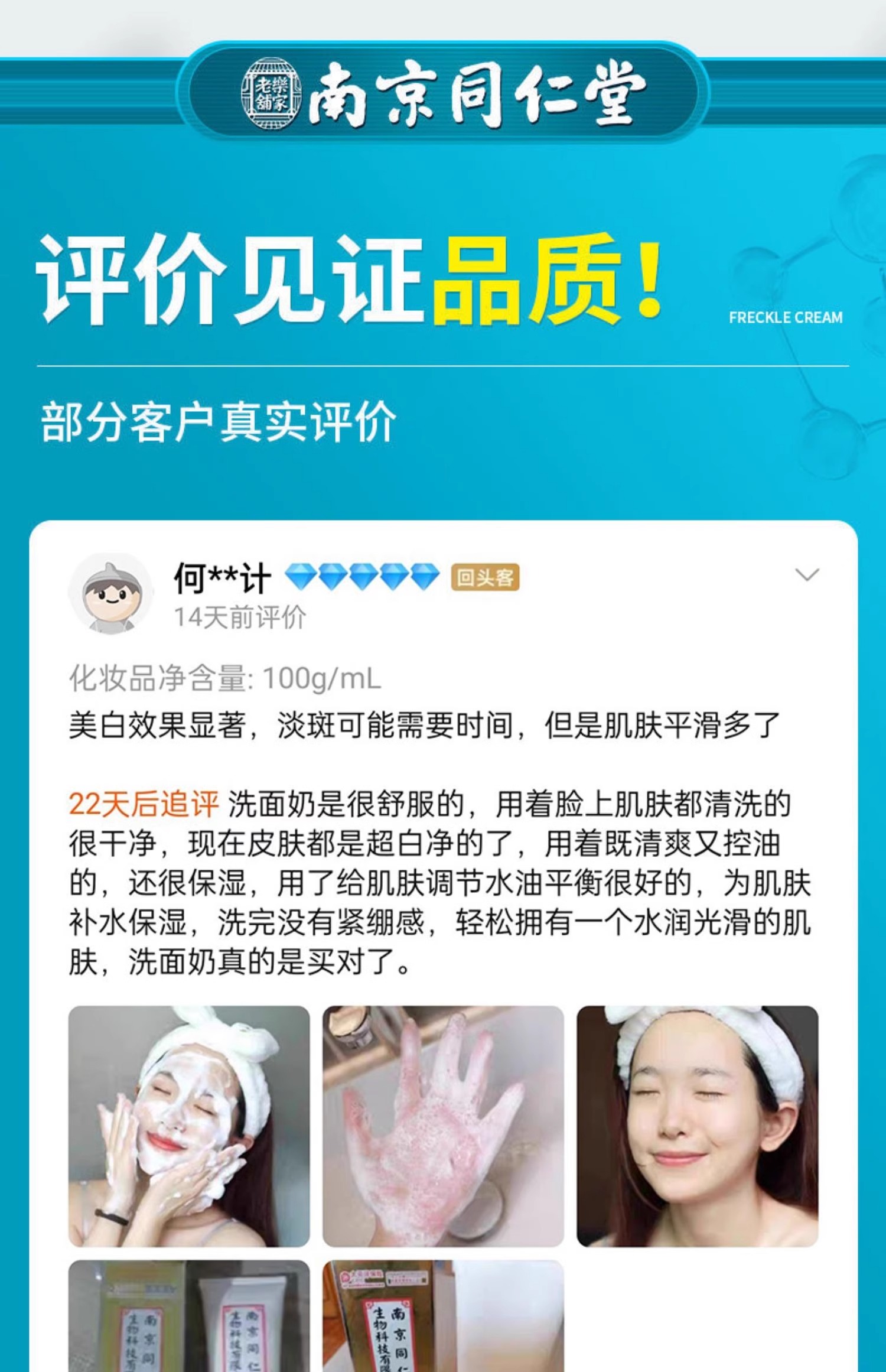 北京同仁堂秘造美白祛斑潔面乳雀斑黃褐斑提亮膚色去祛黃洗面奶