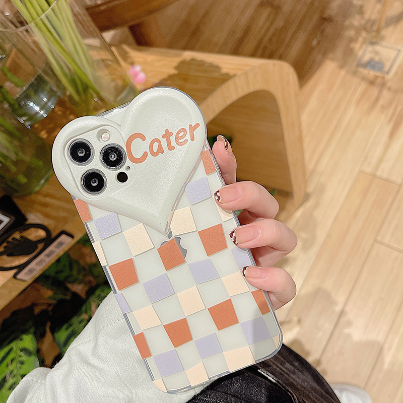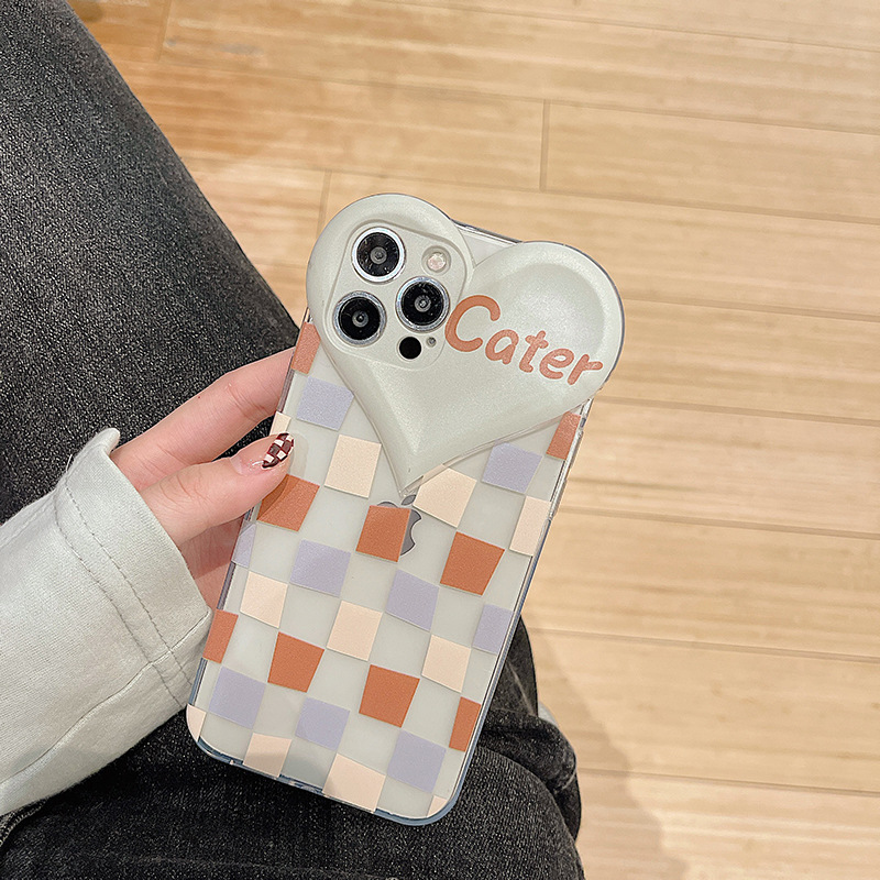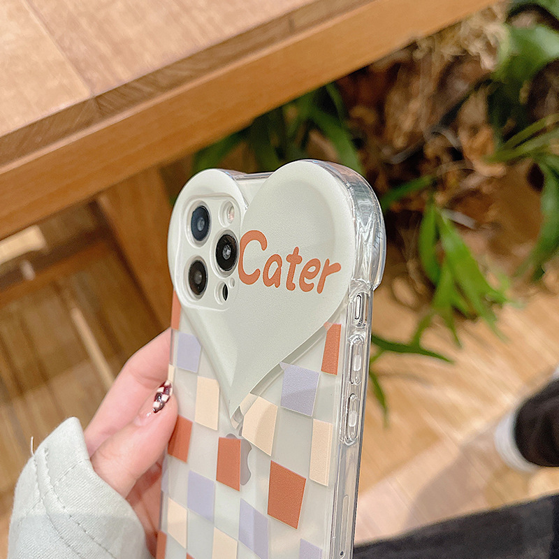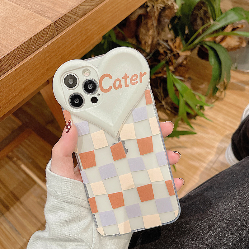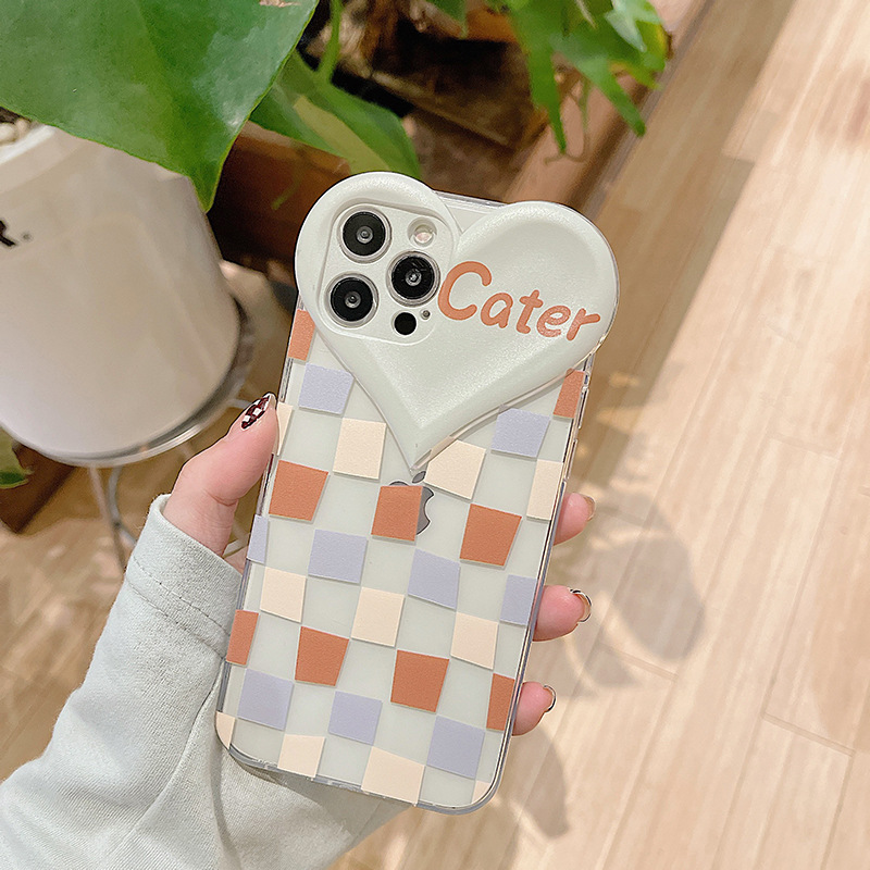 網紅新iPhone13手機殼大愛心透明殼蘋果12promax棋盤格11少女7/8p
