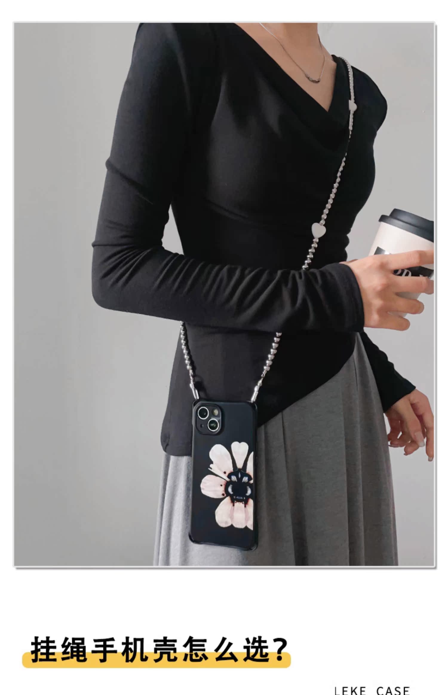 適用蘋果13手機殼掛繩斜挎iphone14promax四角開孔硅膠14pro涂鴉女生11背帶斜跨12pro鏈條手提xsmax創意小眾
