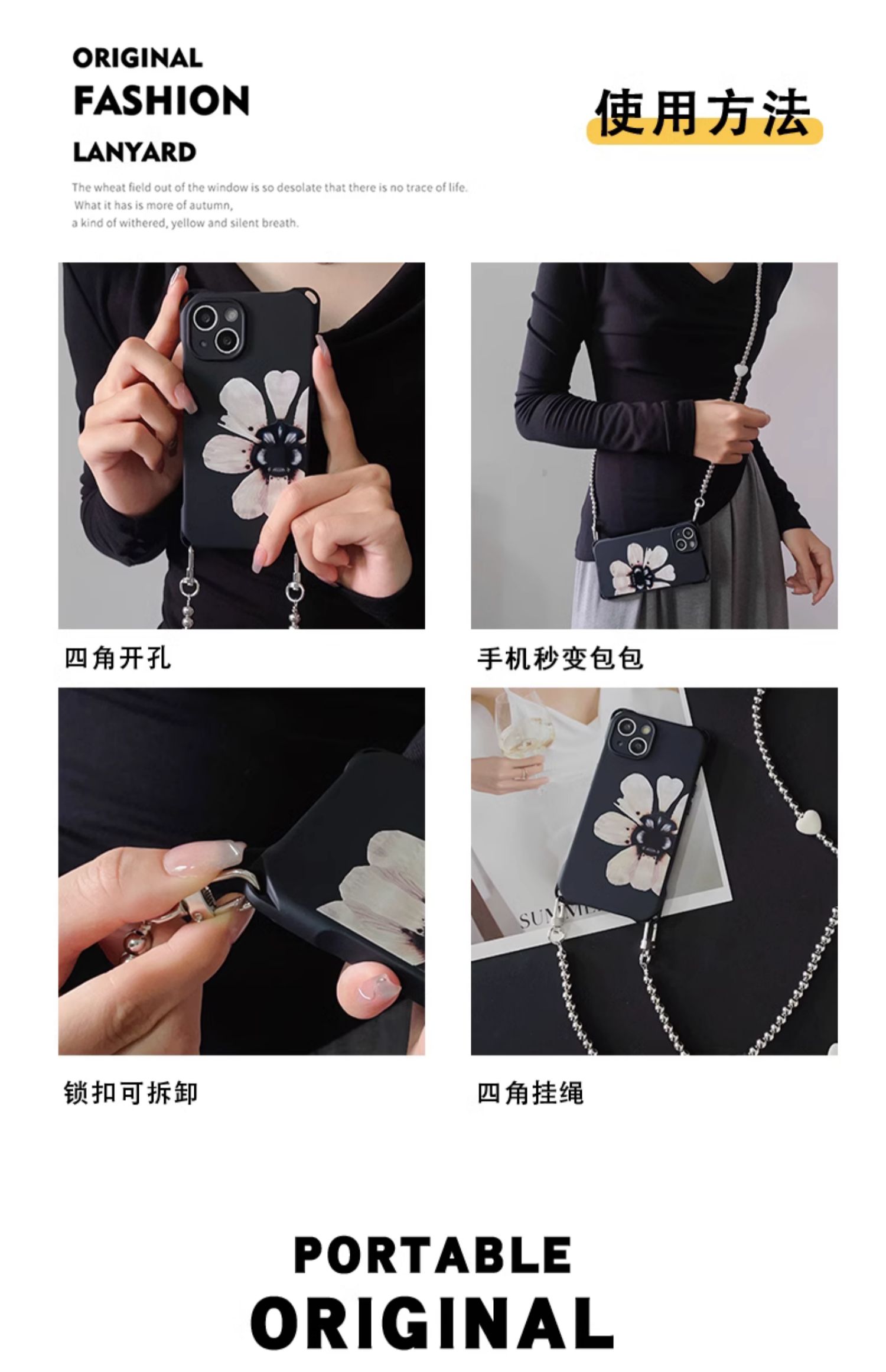 蘋果14手機殼掛繩斜挎可背適用iphone14promax四角開孔硅膠11花朵小眾13pro鏈條防摔12夏天xsm樂殼原創11pro