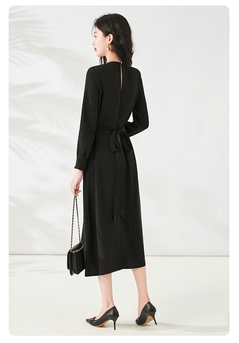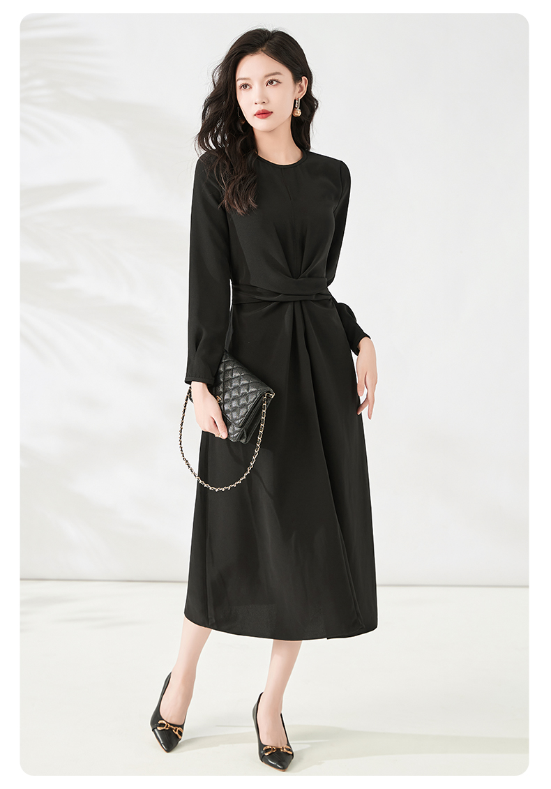 通勤名媛氣質高級感連衣裙女早秋新款通勤顯瘦簡約正式場合裙子冬