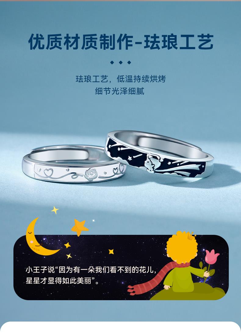 情侶對戒S999純銀戒指一對定制小王子小眾設計女友七夕禮物送男友
