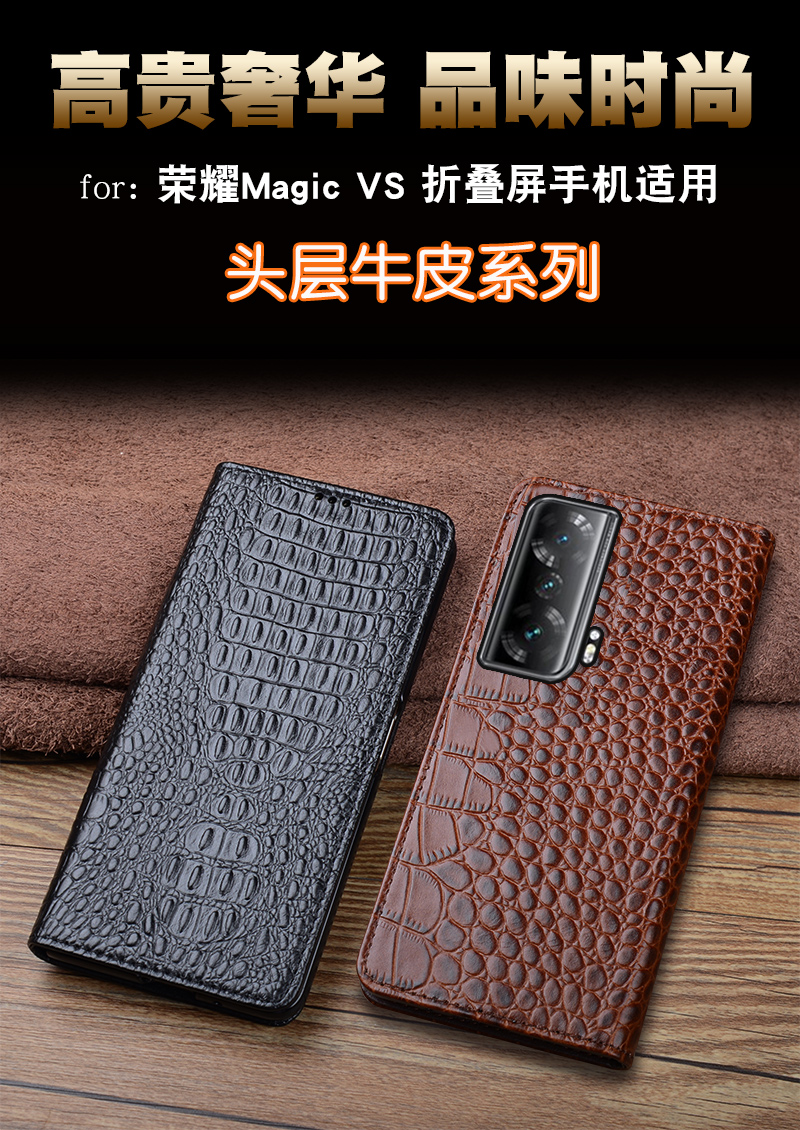 沃比羅適用于榮耀MagicVS手機保護套商務新款手工制作真皮防摔MagicVS全包高級感手機保護殼折疊式翻蓋高檔