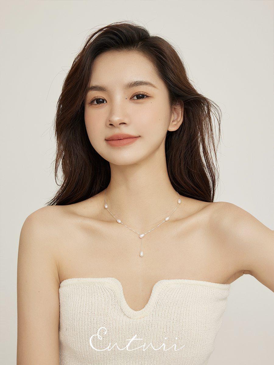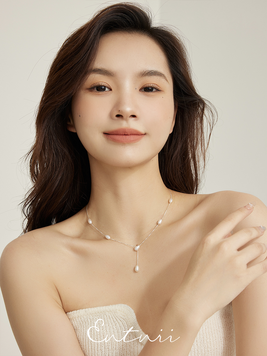 Entnii 溫妮的夢 s925銀淡水珍珠Y字型甜美溫柔鎖骨鏈優雅項鏈