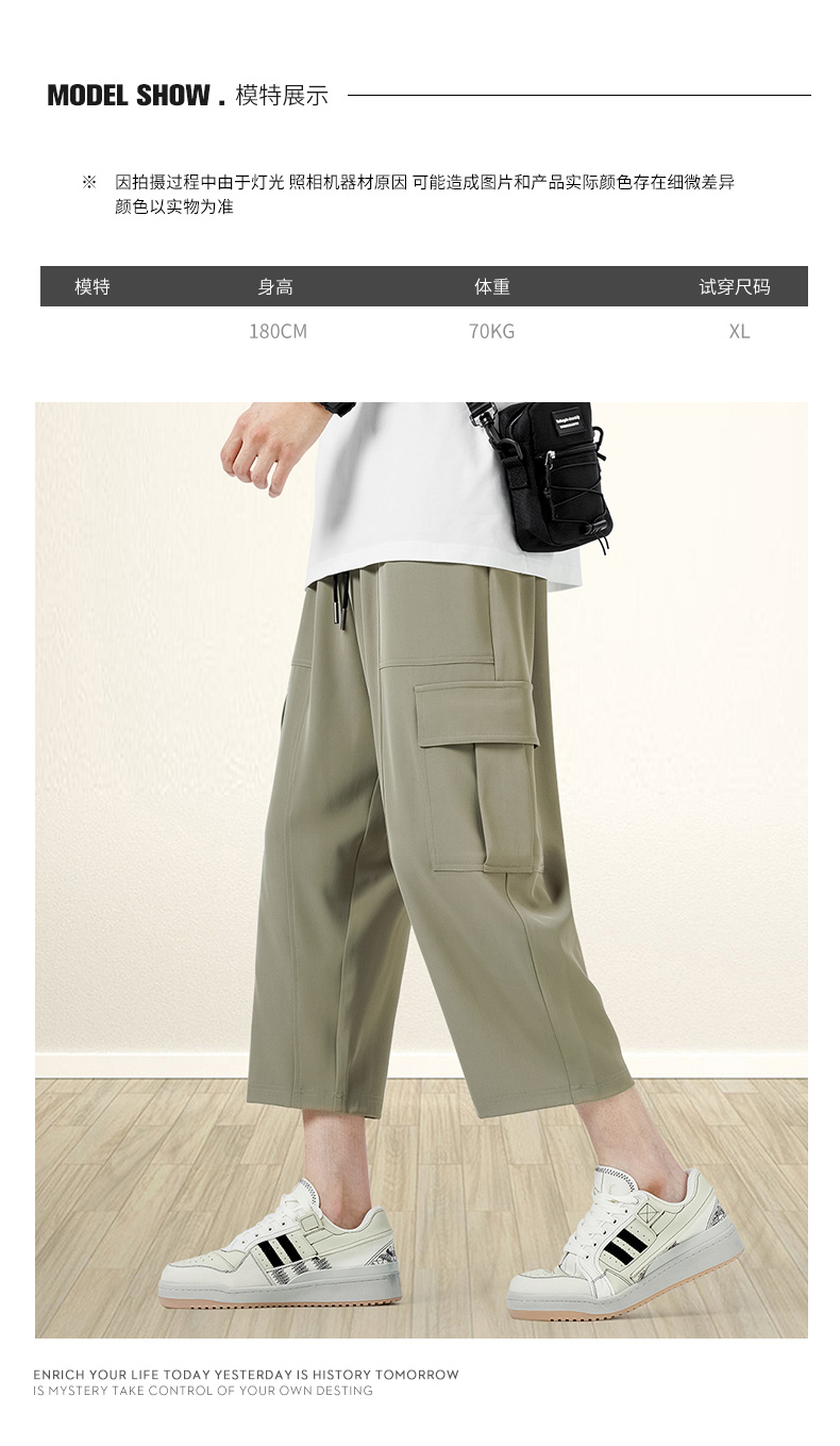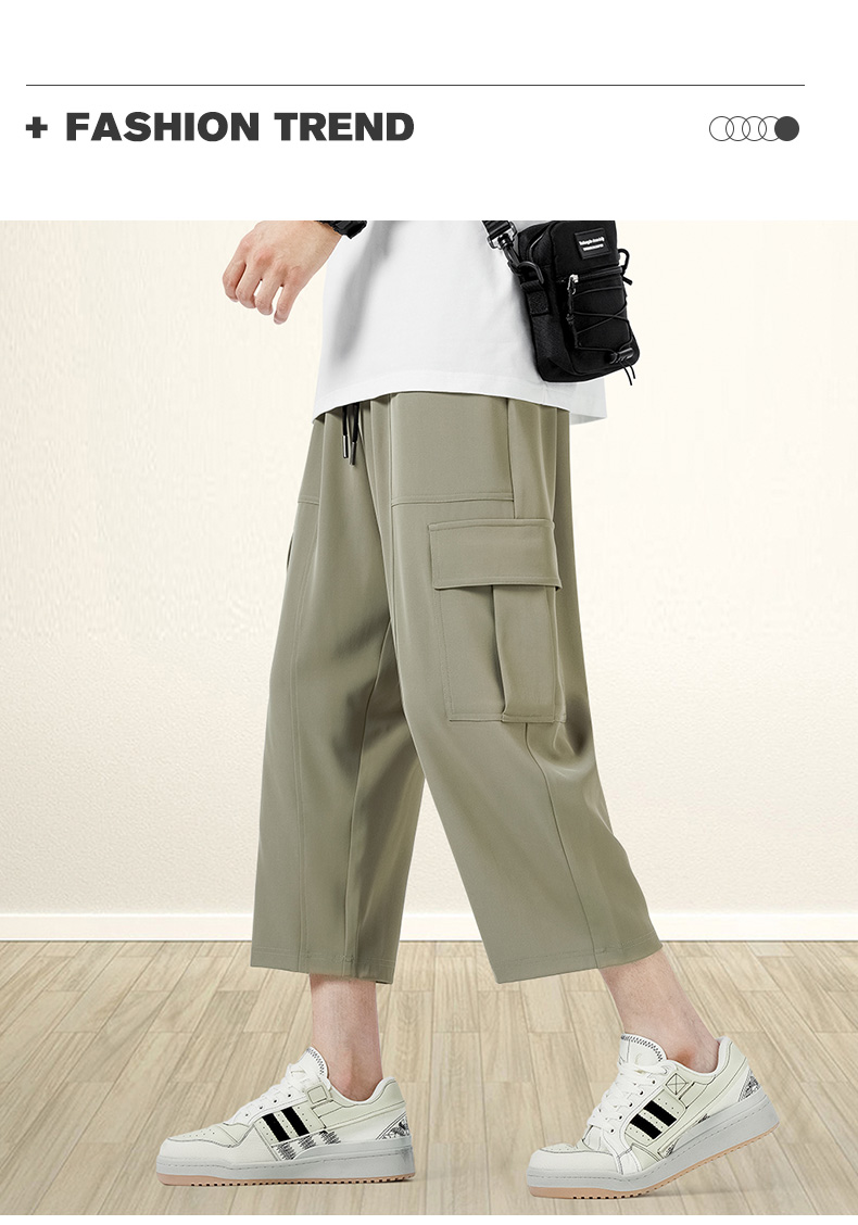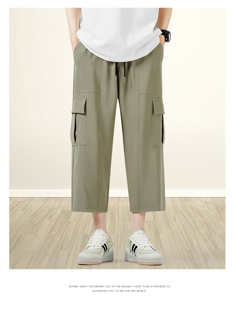 夏季七八分褲男生冰絲速干薄款寬松直筒運動九分闊腿休閑工裝褲子
