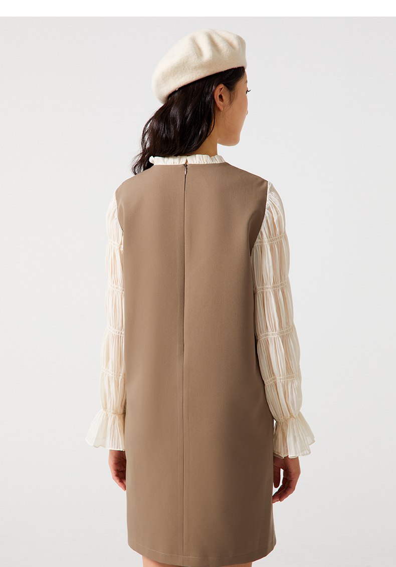 熱風女裝23秋新款女士溫柔拼色假兩件連衣裙小香風氣質連衣裙女