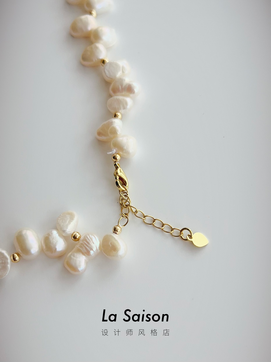 項鏈天然巴洛克珍珠頸鏈輕奢小眾高級感配飾18k包金小眾設計鏈條