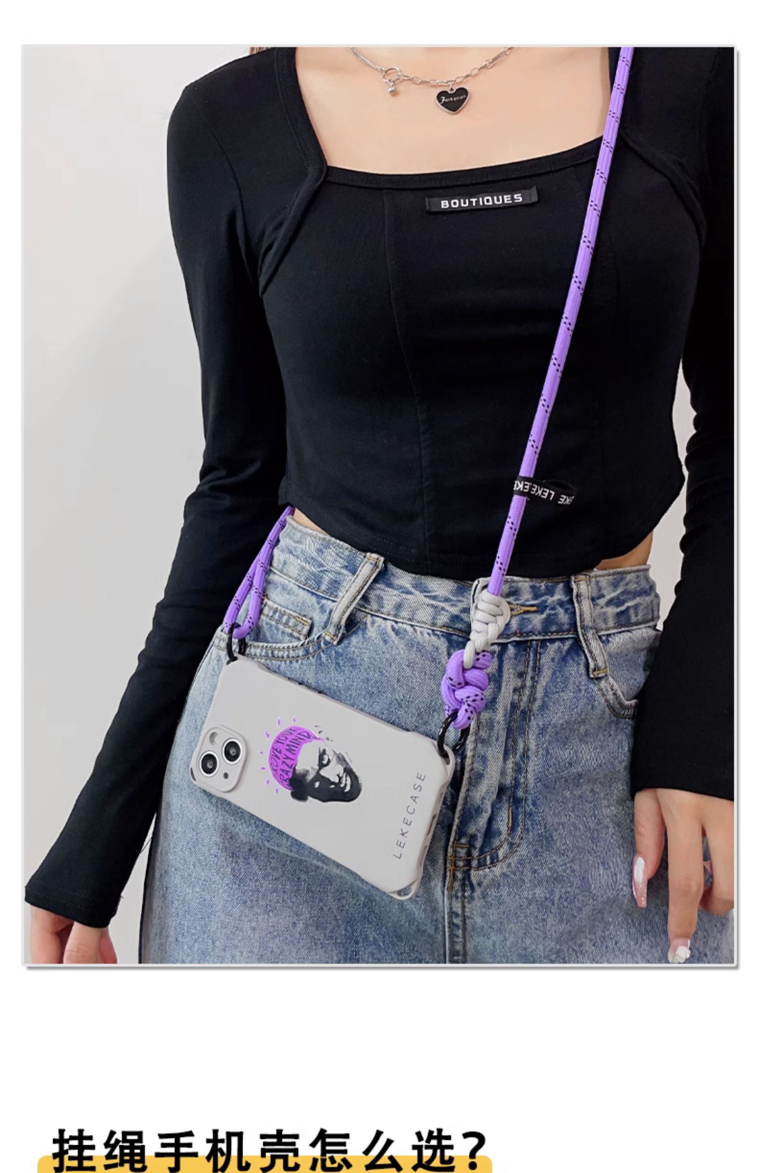 蘋果15手機殼掛繩斜挎可背適用iphone14promax四角開孔硅膠13菩薩文字小眾11pro掛繩手腕12背帶斜跨x明星同款