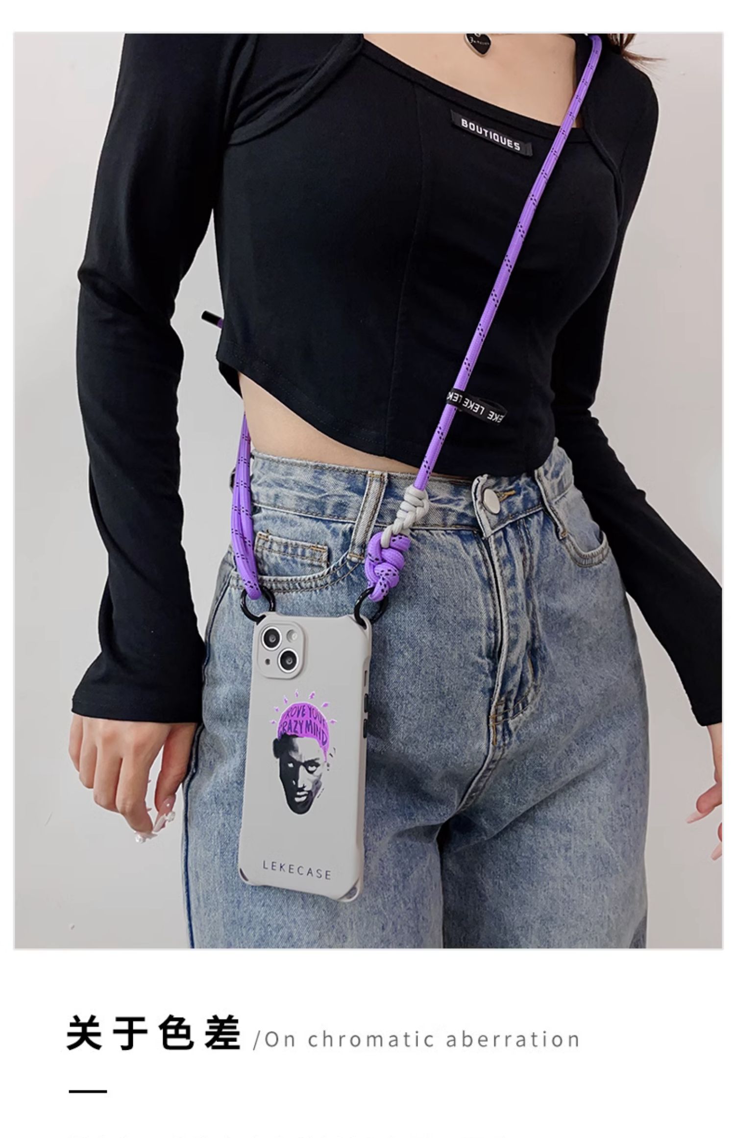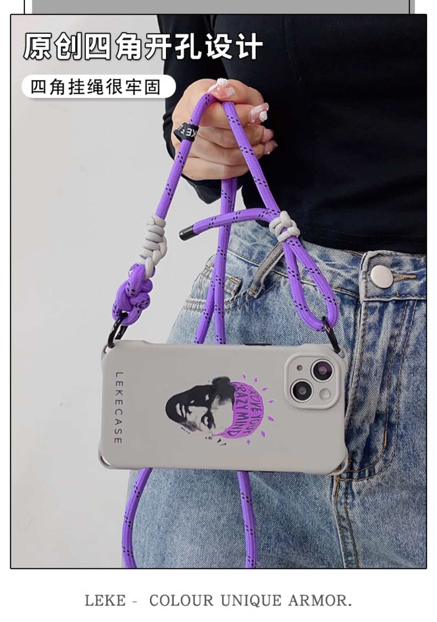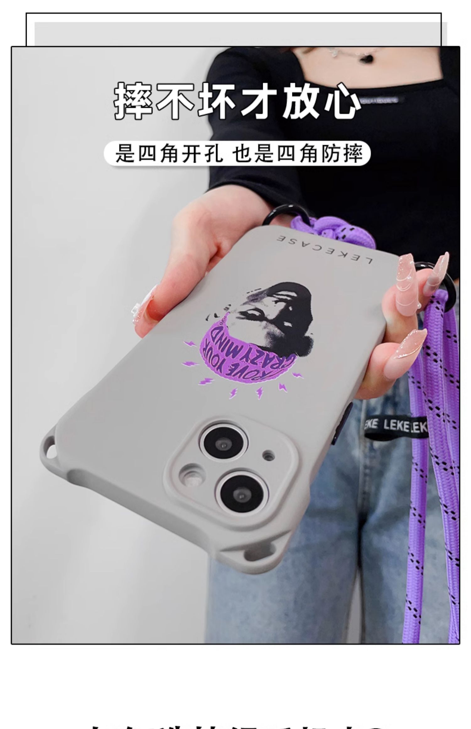 蘋果11手機殼掛繩斜挎可背適用iphone14promax四角開孔硅膠12創意涂鴉14pro背帶斜跨13個性紫色xsmax樂殼原創