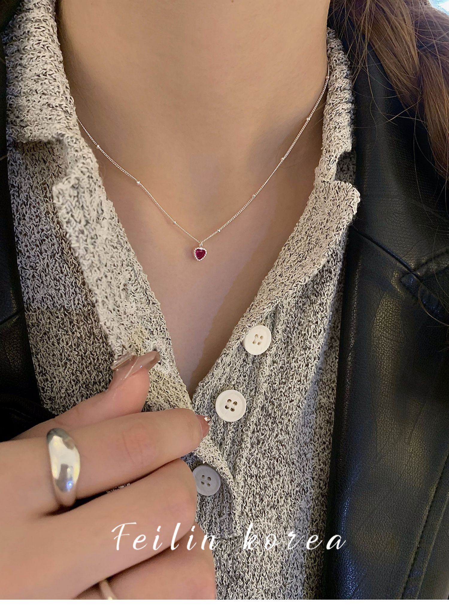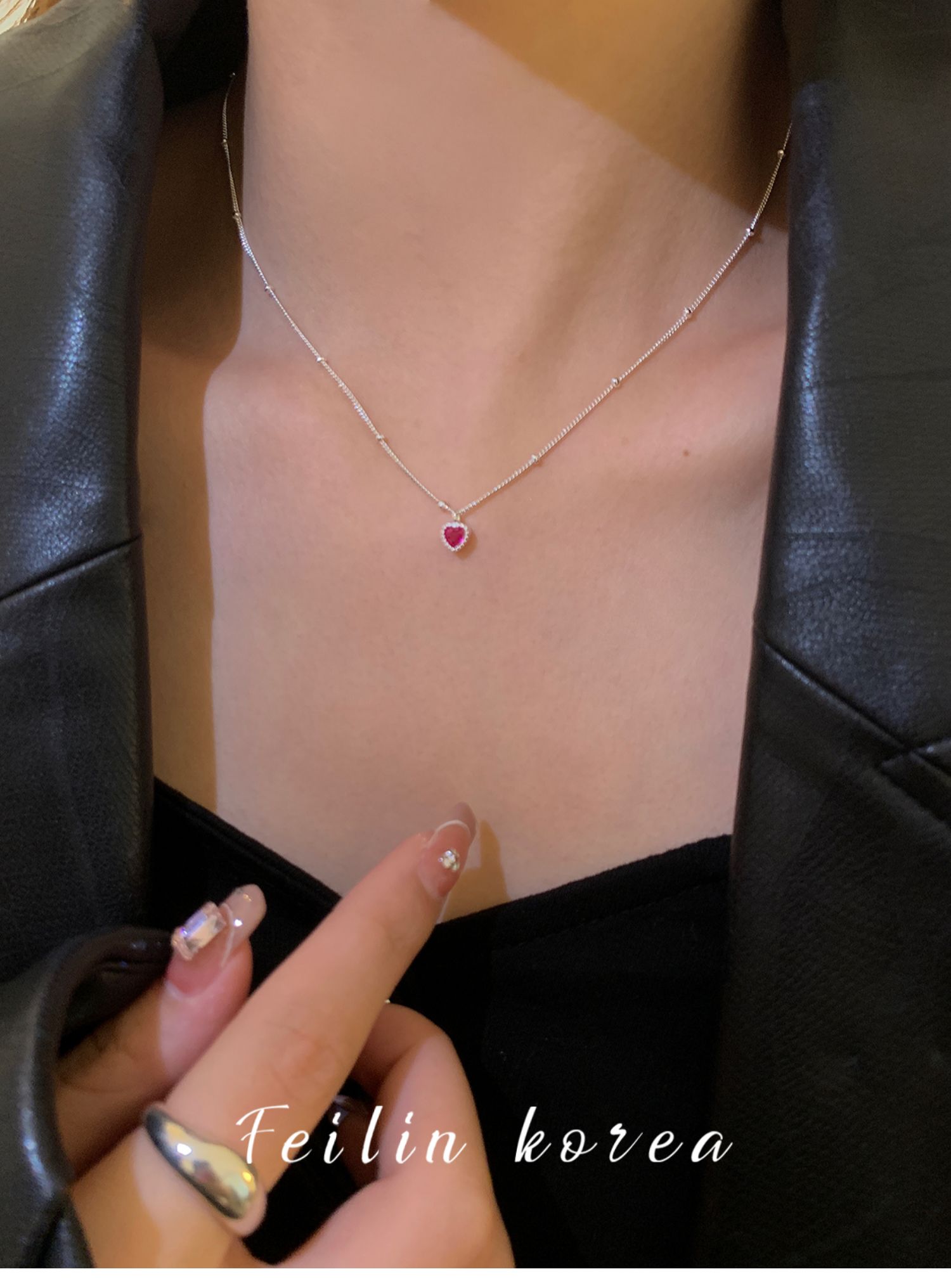 水晶愛心吊墜925純銀項鏈女輕奢小眾頸鏈鎖骨鏈配飾2023新款爆款