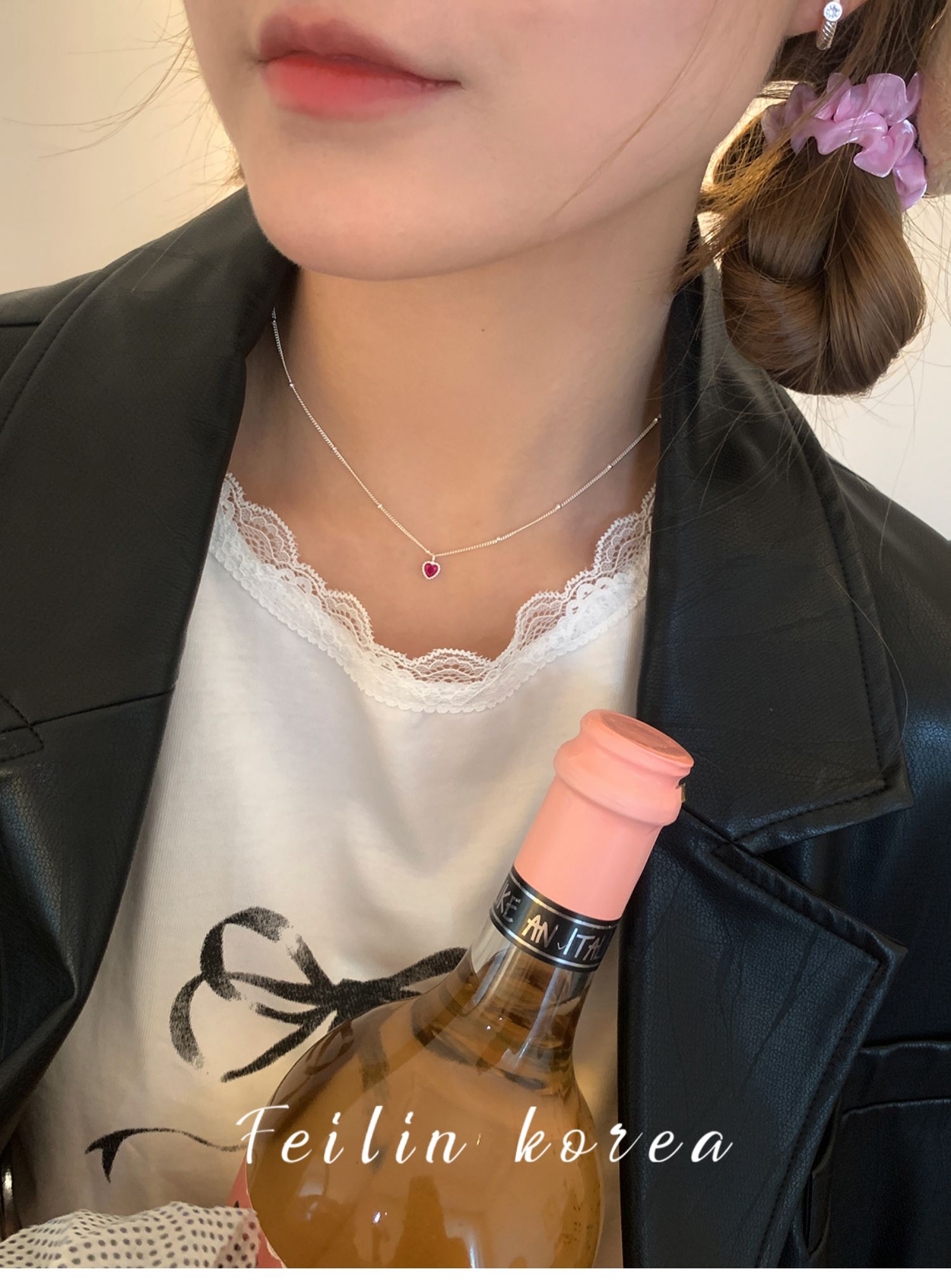 復古桃心鈦鋼18k金法式愛心鎖骨鏈