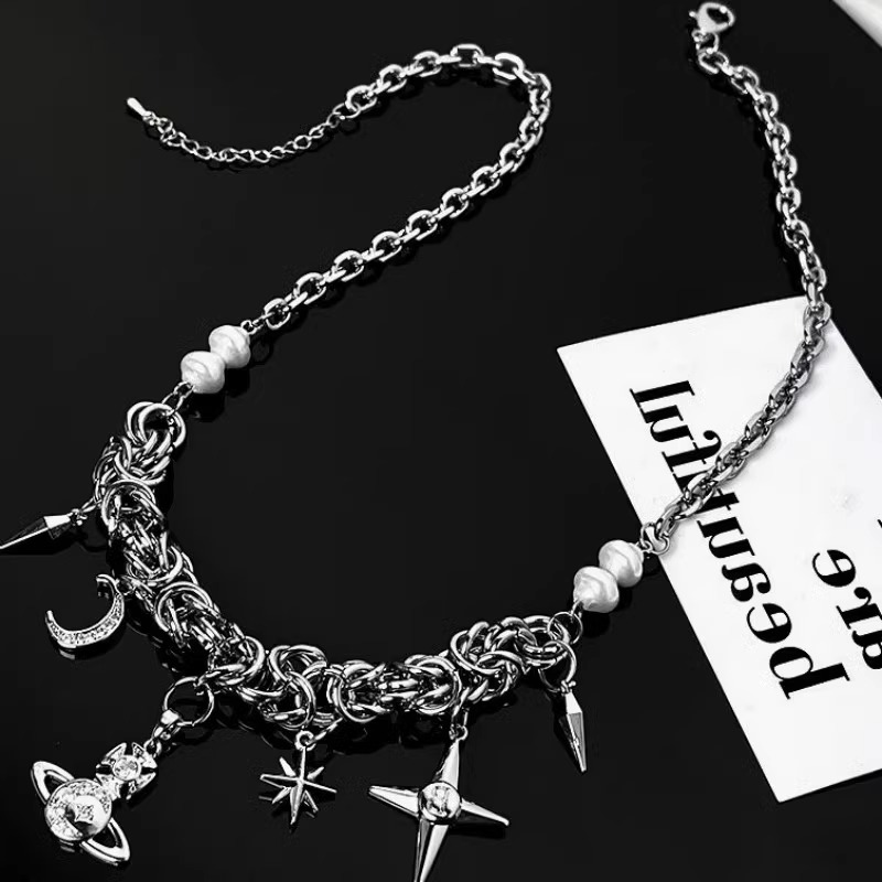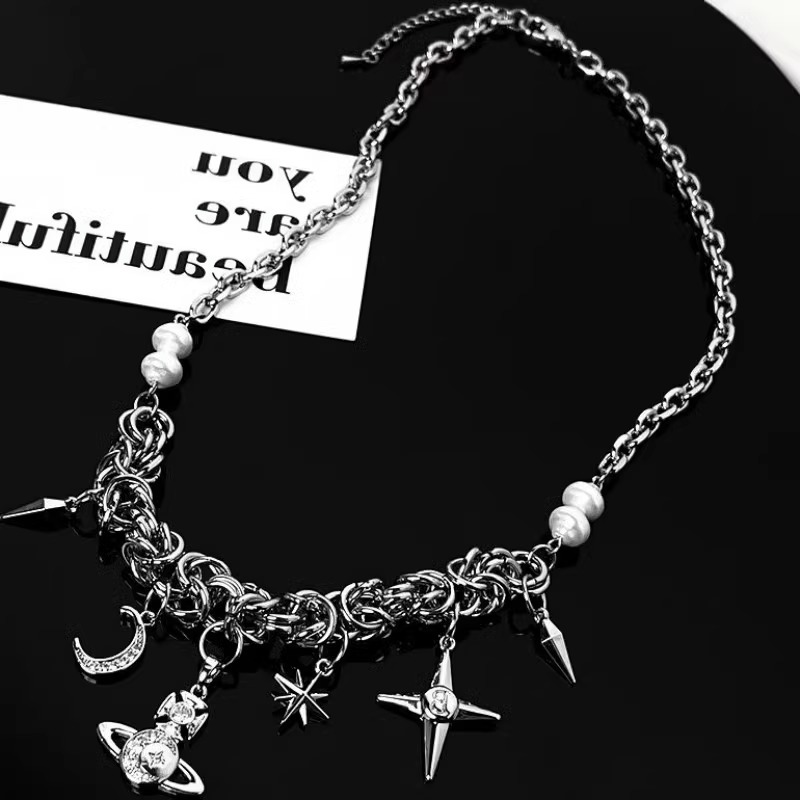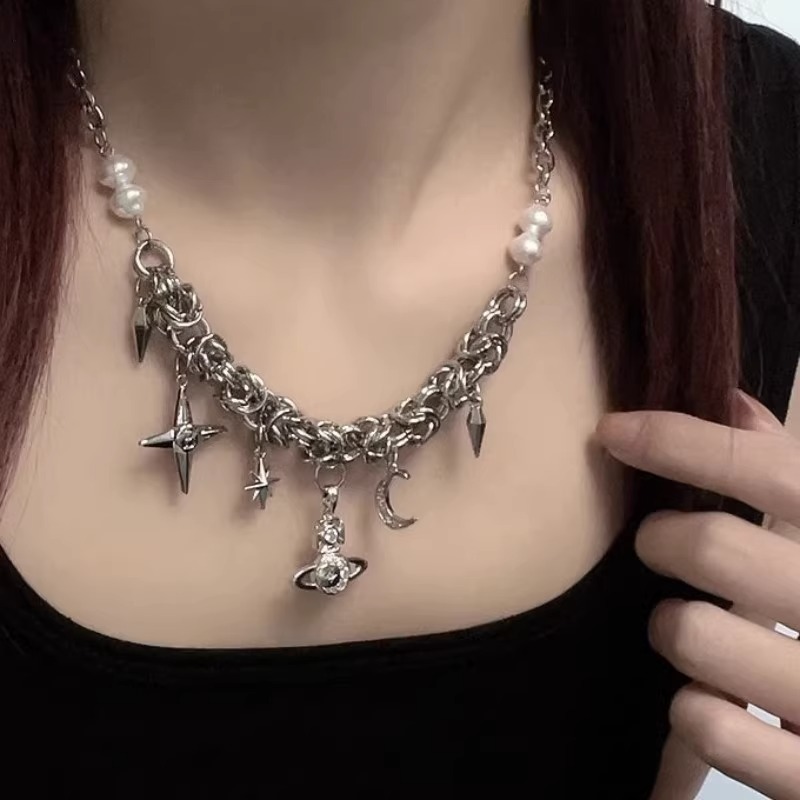 高級感辣妹流蘇十字架鎖骨鏈金屬頸鏈小眾中性冷淡風項鏈男女
