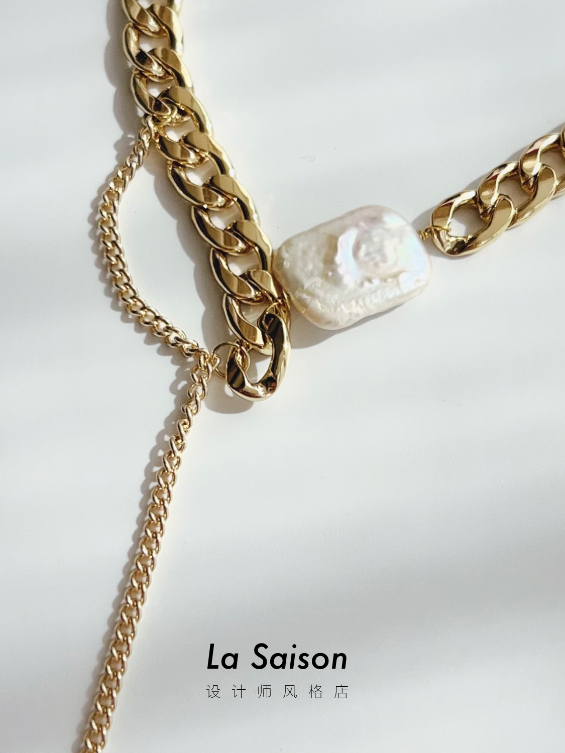 項鏈天然巴洛克珍珠毛衣鏈輕奢小眾設計感古巴鏈2023最新款女鏈條