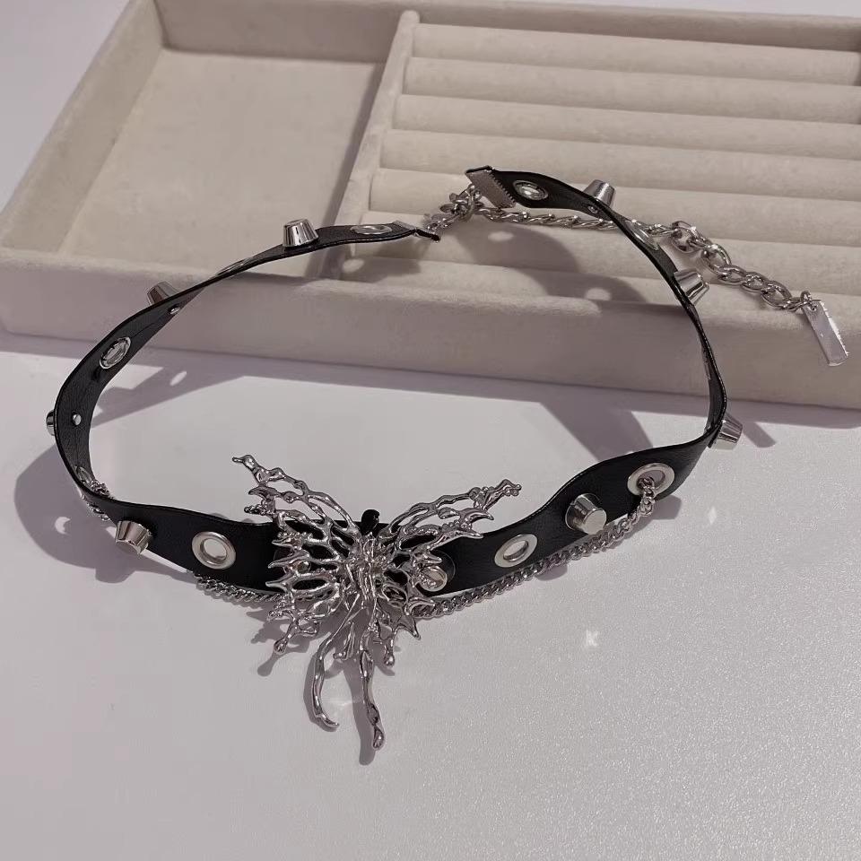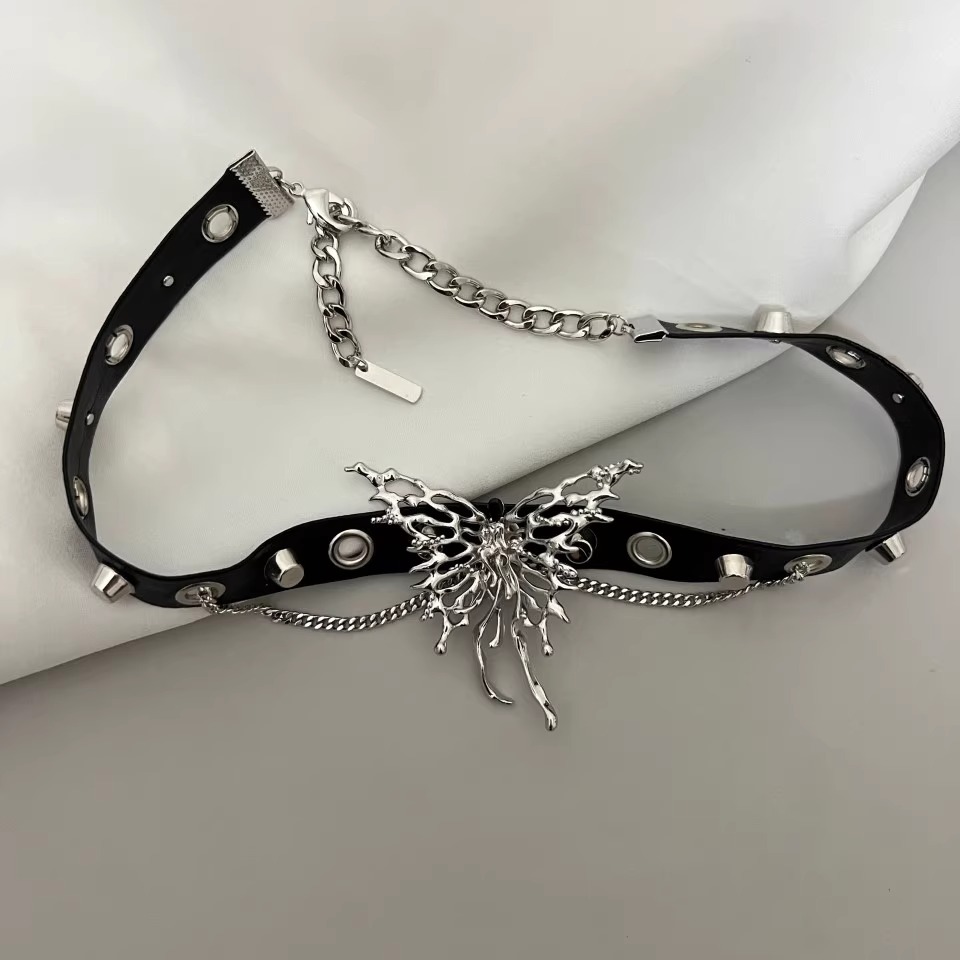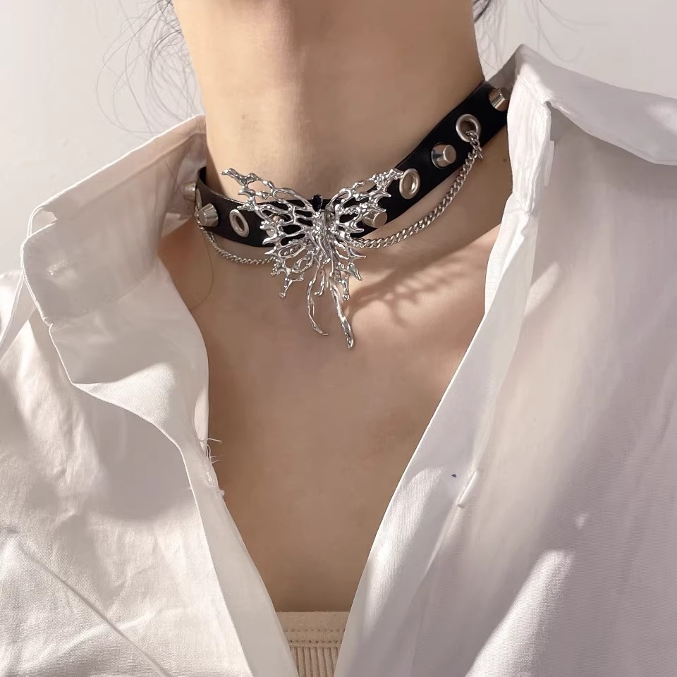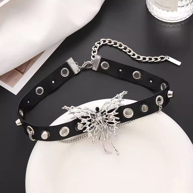 甜酷暗黑風鑲鉆蝴蝶流蘇吊墜鎖骨鏈choker小眾頸圈項鏈