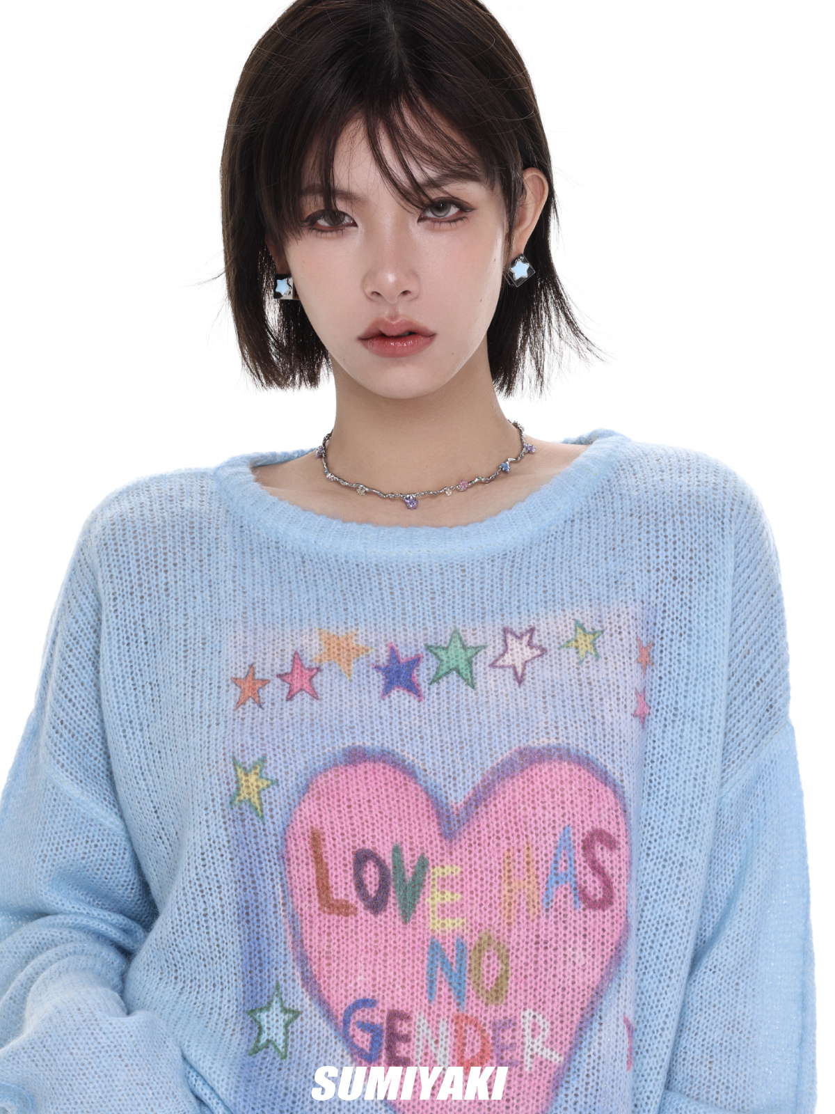 SUMIYAKI原創設計藍色清透液態愛心金屬流蘇雙層項鏈小眾鎖骨鏈