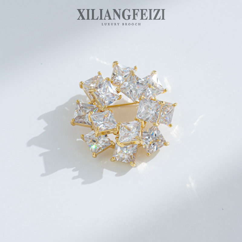 西涼妃子輕奢極簡風胸花 精致超閃方圓形胸針檔女外套配飾禮物