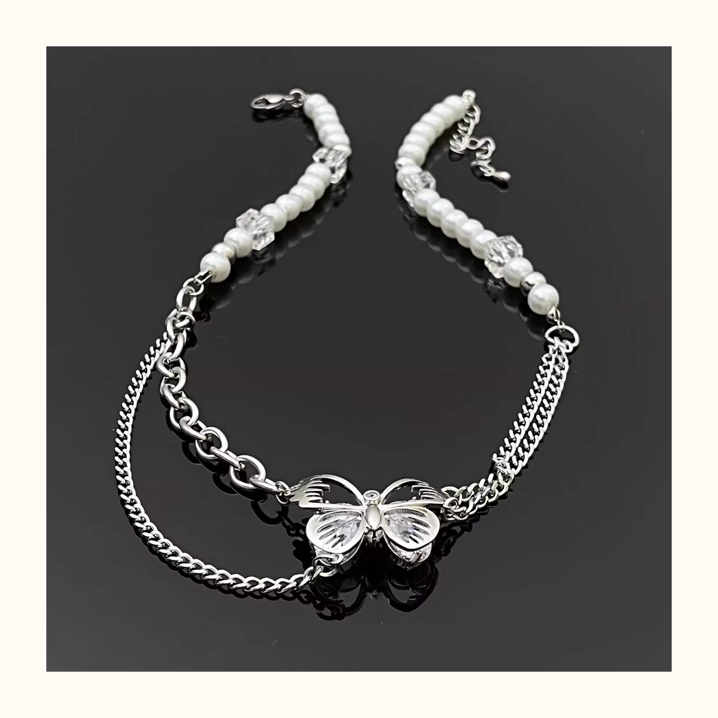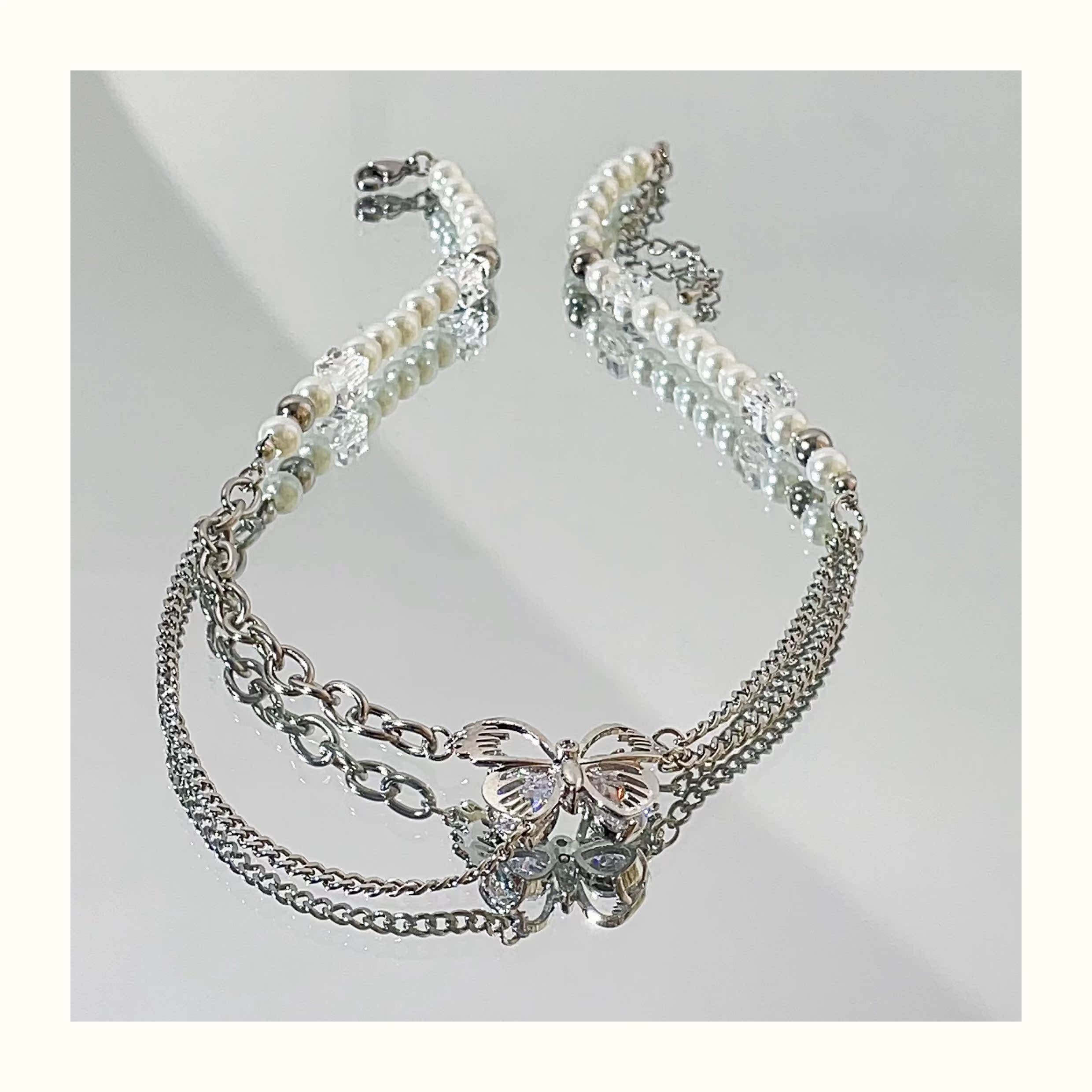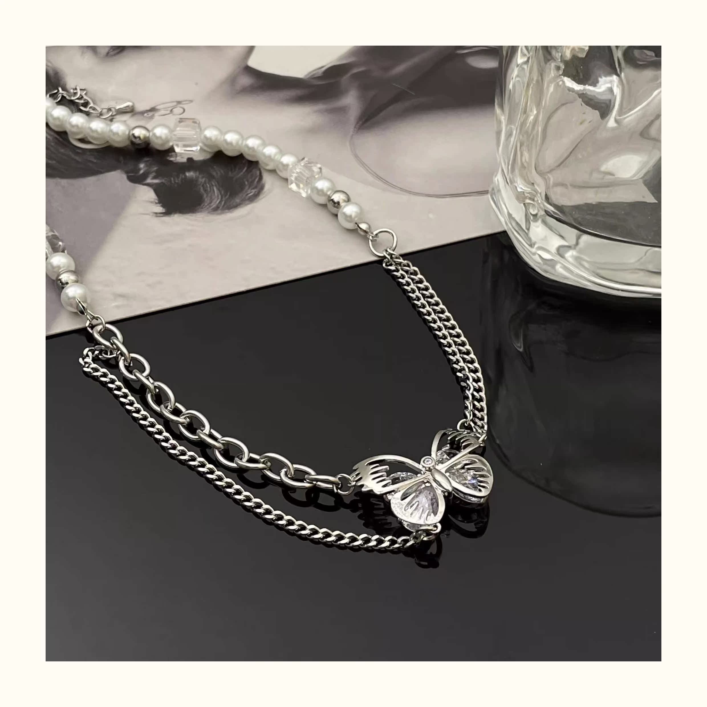 蝴蝶鋯石珍珠拼接項鏈女ins學生輕奢小眾設計高級感百搭甜酷飾品
