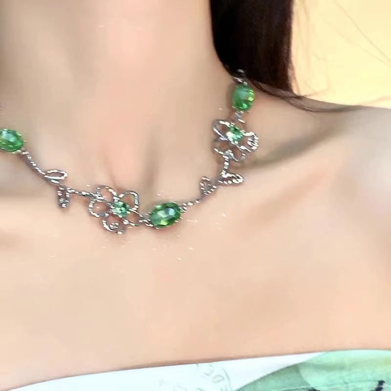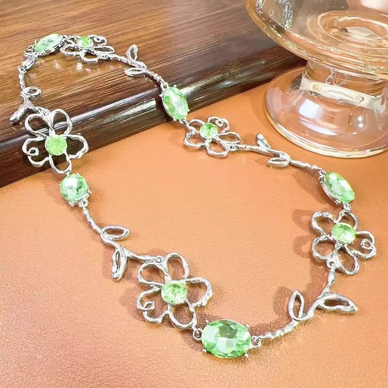 春夏清透小花花葉子寶石花朵漣漪鎖骨鏈小眾鏤空樹葉頸鏈項