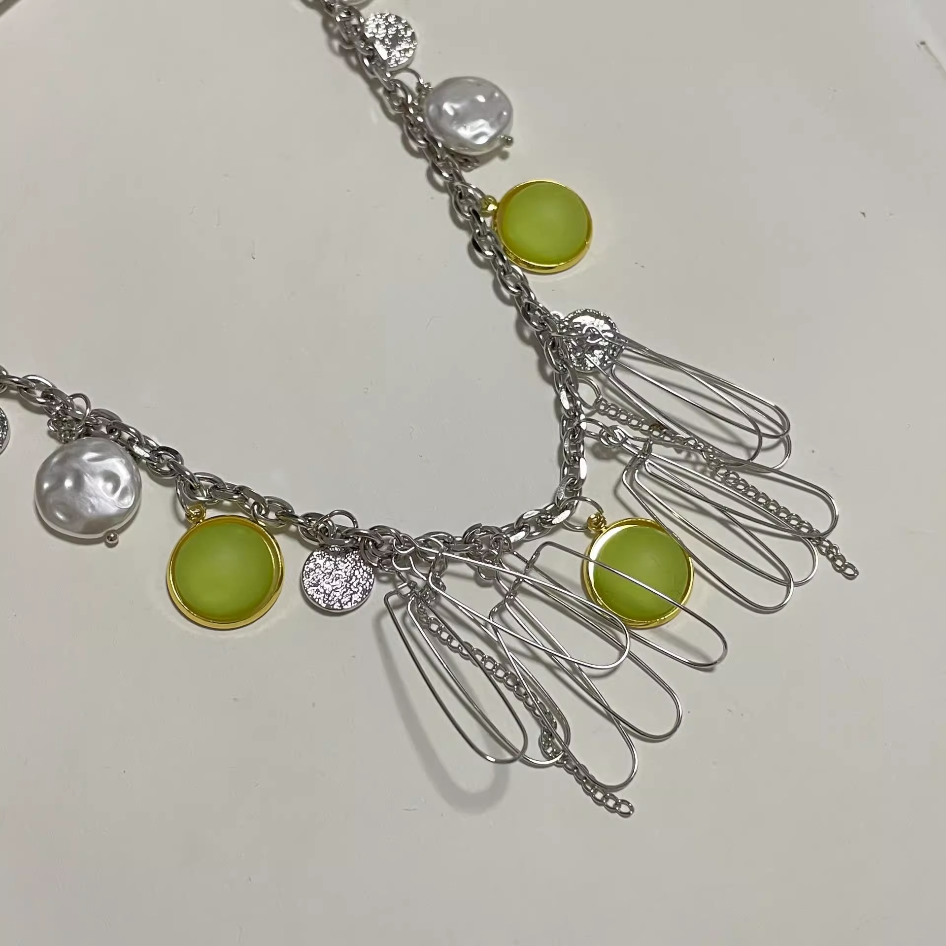 青提流體熒光綠設計鎖骨鏈綠色液化金屬幾何流蘇高級感項鏈
