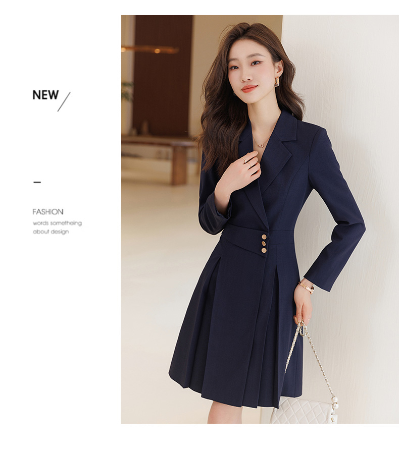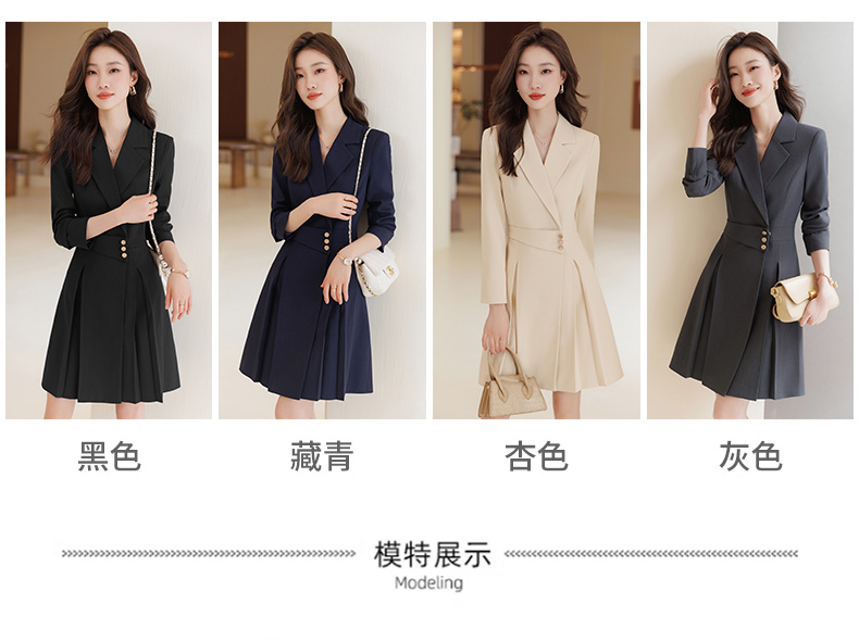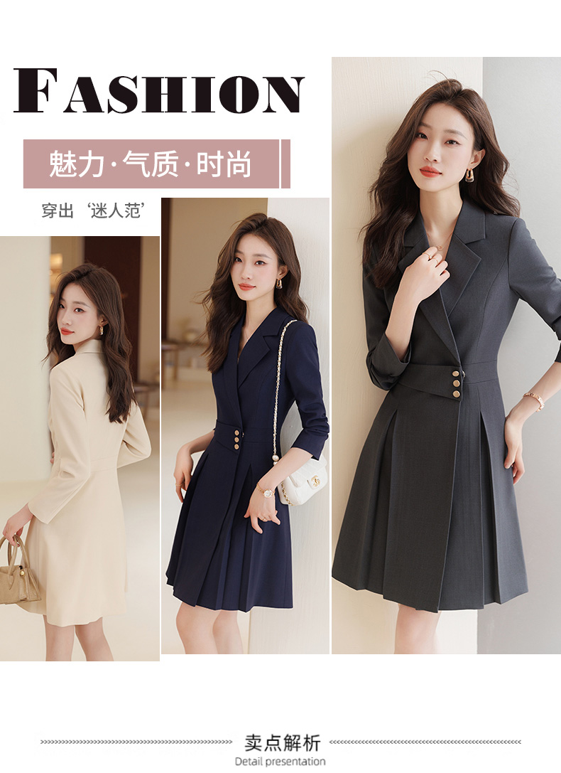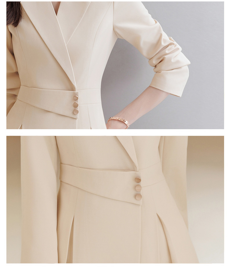 杏色西裝連衣裙女秋冬季美容院前臺工作服酒店經理長袖職業裝裙子