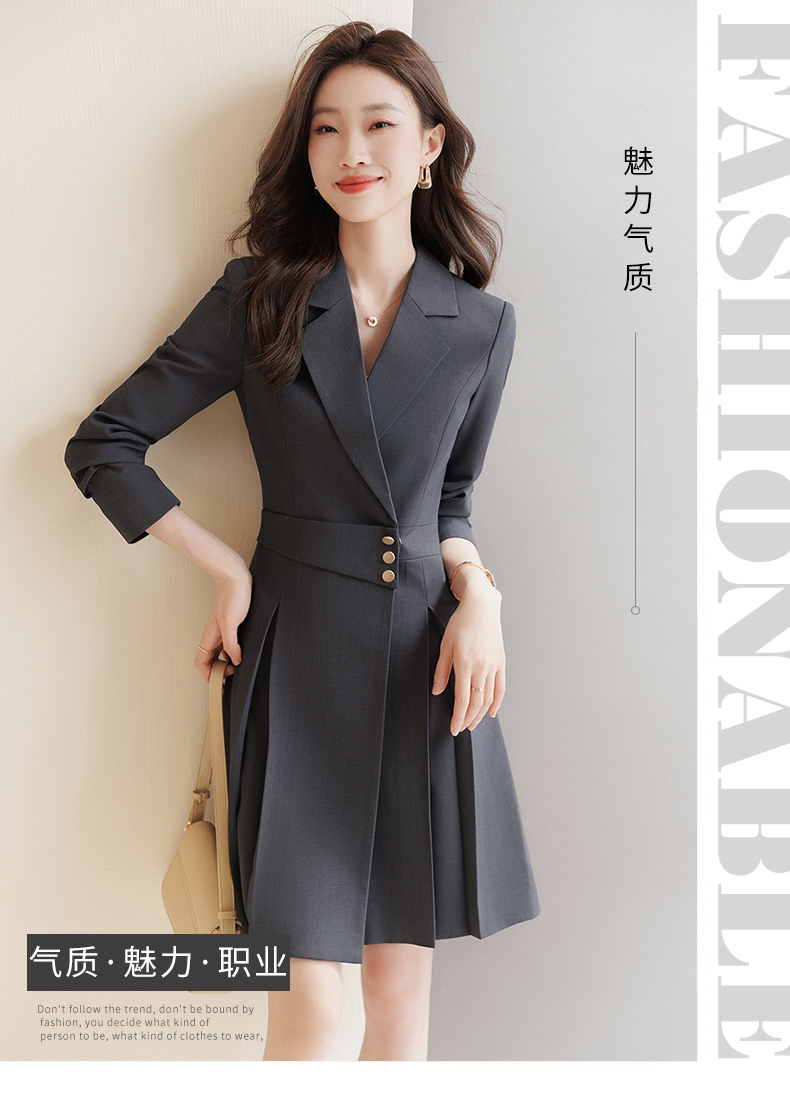 灰色西裝連衣裙女秋冬長袖通勤房地產銷售珠寶酒店前臺工作服裙子