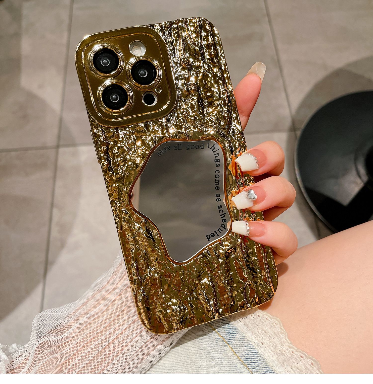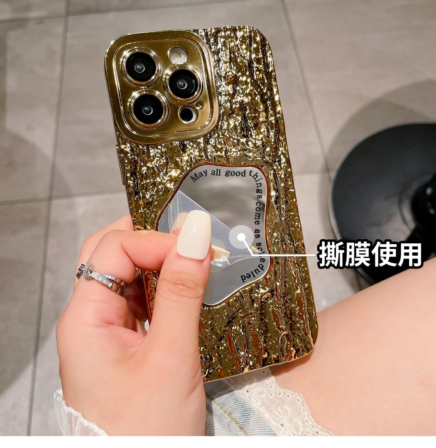 銀底閃耀巖石鏡面支架iphone14promax手機殼新款蘋果14pro高級感14蘋果13套12全包硅膠11小眾ProMax女Pro適用