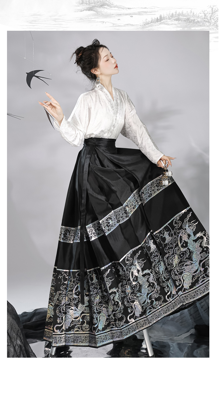 序繪原創明制漢服[觀山亭]改良襯衣新中式螺鈿黑馬面裙女冬款日常