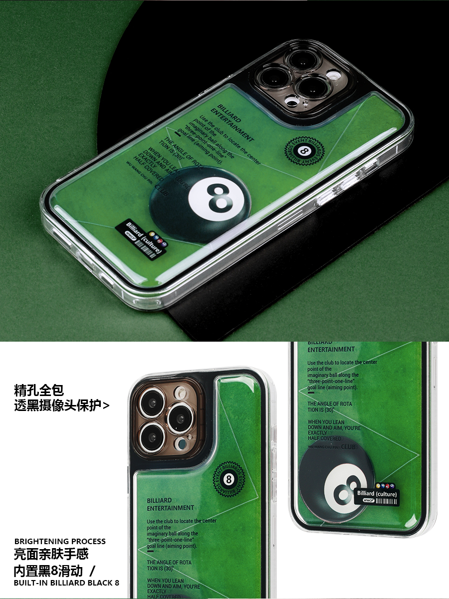 悟望初品經典創意臺球桌趣味解壓設計內置滑動黑8小眾ins風精孔全包手機殼適用蘋果12iPhone15ProMax14plus13