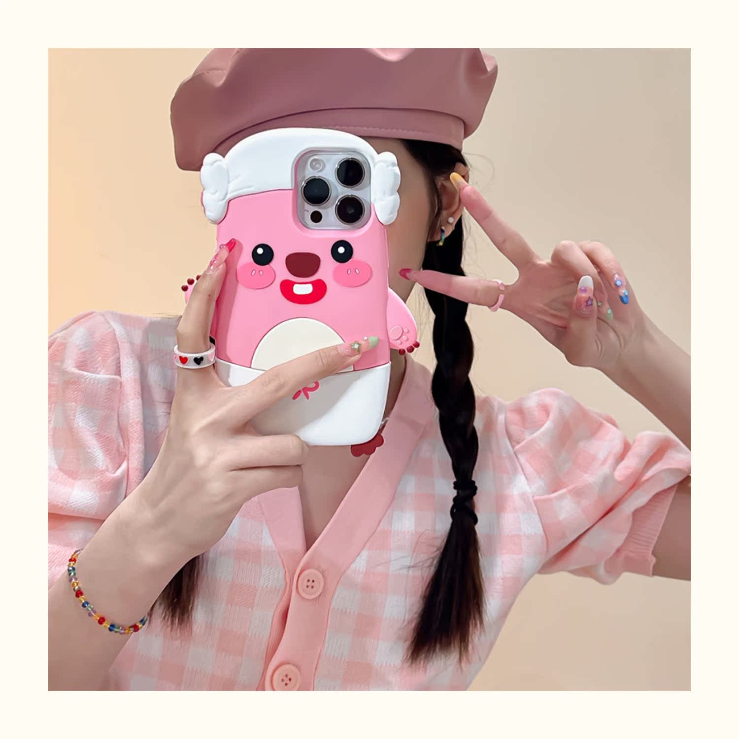 露比loopy小海貍適用iPhone13手機殼14蘋果14pro立體11硅膠12可愛14promax粉色少女新款13pro防摔保護套全包