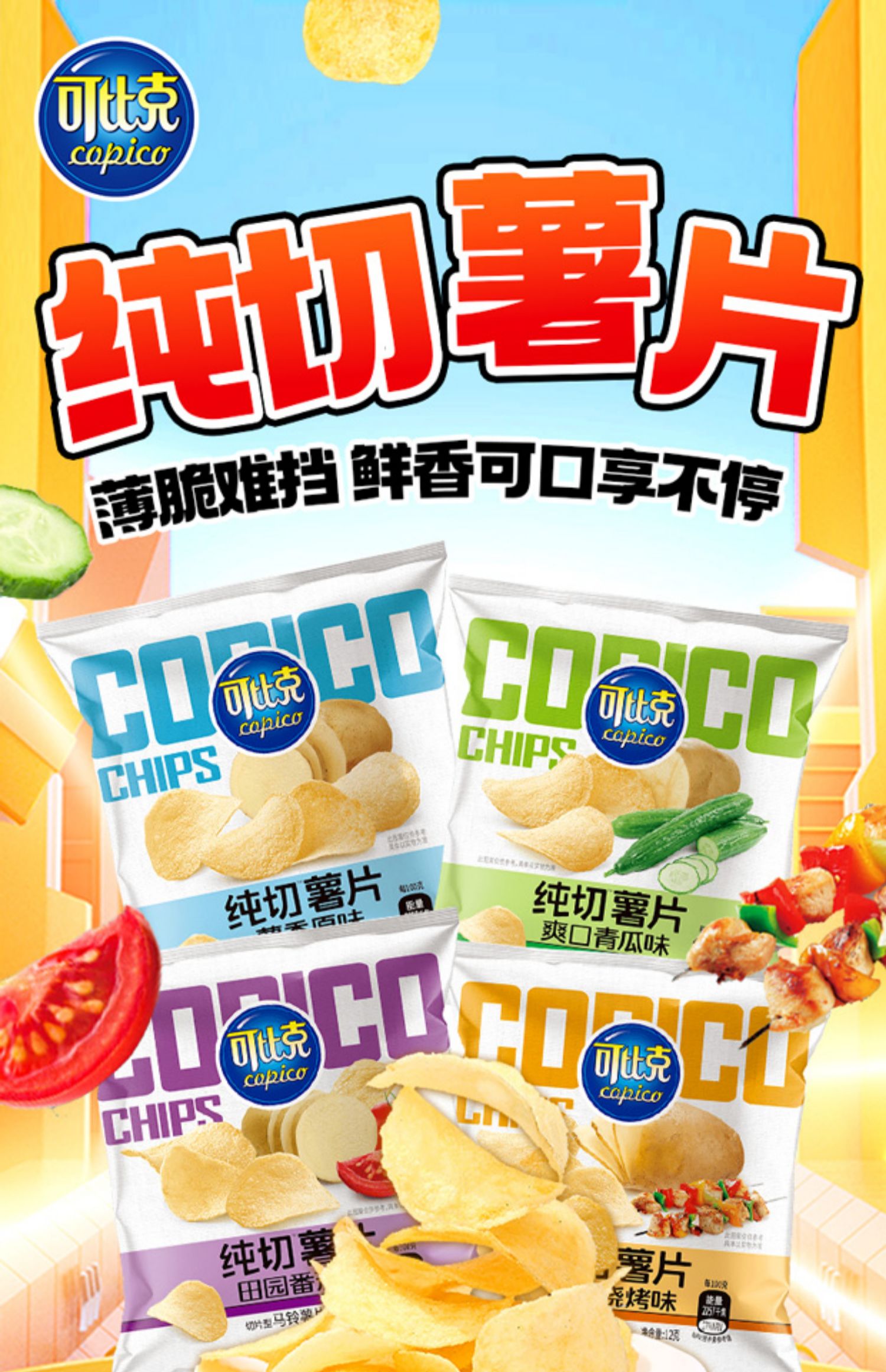 可比克薯片純切原味黃瓜味超大整箱番茄零食小吃休閑食品大禮包